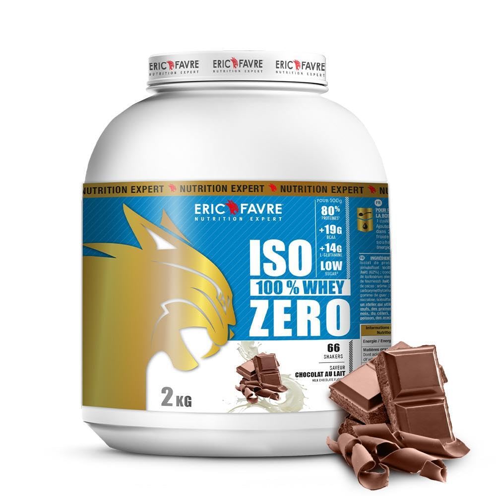 2kg Jar Milk Chocolate Flavor Muscle Definition Development NO aspartame collagen GMO 80 protein 19g BCAA 14g glutamine 100 whey Low sugar Delicious taste - ISO ZERO is made up of 80 whey isolate protein (WPH, WPI), one of the purest sources of protein. The Eric Favre laboratory selected it for its rapid assimilation allowing muscle anabolism. Due to its cold microfiltration, the protein is only minimally denatured and ensures very good digestion. Proteins contribute to increg muscle mass. ANTI-DOPING: Product complies with Anti-doping regulations, compliant with AFNOR NF V94-001 standard (at the date of manufacture of the batch) per 100g INGREDIENTS Whey protein isolate (emulsifier: sunflower lecithin) (milk) (62 ) whey protein concentrate (emulsifier: sunflower lecithin) (milk) (32.18 ) cocoa powder flavoring (2.5 ) emulsifier: carboxymethylcellulose thickener: guar gum salt sweeteners: sucralose, acesulfame KThe ISO ZERO Range from Laboratoire Eric Favre is a range of Whey Isolate protein intended for zero whey - Developed in the Eric Favre Laboratory and Compliant with the AFNOR NF V94-001 standard, ANTI-DOPING Anti-doping on the batch manufacturing date. PRACTICAL AND TASTY: On training days: take 1 scoop of 30g in 150 to 200ml of water one hour before training then a scoop of 30g just after training. On rest days: take 1 scoop of 30g in 150 to 200ml of water as a snack at 10 a.m. or 4 p.m. in the evening before bed. RAPID MUSCLE MASS GAIN: Eric Favre Whey contains a highly concentrated and rapidly assimilated energy source: supports physical activity and promotes muscle growth. INCREASE IN MUSCLE MASS: Proteins help increase muscle mass. Eric Favre selects the best proteins to allow you to gain mass effectively. Guaranteed without GMOs, collagen, aspartame, or gluten. ISO ZERO 100 Whey Isolate contains more than 85 protein. This Whey protein is 100 Isolate whey protein (WPH, WPI), one of the purest sources of protein, obtained from the production of soft cheese. The Eric Favre laboratory selected it for its rapid assimilation promoting muscle development. Perfect dilution, creamy and delicious texture, low sugar content! Pot de 2kg Saveur Chocolat au lait Définition Développement musculaire SANS aspartame collagène OGM 80 de protéines 19g de BCAA 14g de glutamine 100 whey Faible teneur en sucres Goût délicieux - ISO ZERO est constituée de de 80 de protéines d'isolate de whey (WPH, WPI), l'une des plus pures sources de protéines. Le laboratoire Eric Favre l'a sélectionnée pour son assimilation rapide permettant l'anabolisme musculaire. De part sa microfiltration à froid, la protéine n'est que très peu dénaturée et lui assure une très bonne digestion. Les protéines contribuent à augmenter la masse musculaire. ANTI-DOPAGE : Produit conforme à la règlementation Anti-dopage, conforme à la norme AFNOR NF V94-001 (à la date de fabrication du lot) pour 100g INGRÉDIENTS Isolat de protéine de whey (émulsifiant : lécithine de tournesol) (lait) (62 ) concentré de protéine de lactosérum (émulsifiant : lécithine de tournesol) (lait) (32.18 ) poudre de cacao arôme (2.5 ) émulsifiant : carboxymethylcellulose épaississant : gomme de guar sel édulcorants : sucralose, acésulfame KLa Gamme ISO ZERO du Laboratoire Eric Favre est une gamme de protéine Whey Isolat destinée à la zero whey - Élaboré dans le Laboratoire Eric Favre et Conforme à la norme AFNOR NF V94-001, ANTI-DOPAGE Anti-dopage à la date de fabrication du lot. PRATIQUE ET SAVOUREUX : Les jours d'entraînement : prendre 1 mesure de 30g dans 150 à 200ml d'eau une heure avant l'entraînement puis une mesure de 30g juste après l'entraînement. Les jours de repos : prendre 1 mesure de 30g dans 150 à 200ml d'eau en en-cas à 10H ou à 16H le soir avant le coucher. PRISE DE MASSE MUSCULAIRE RAPIDE : La Whey Eric Favre contient une Source d'énergie très concentrée et rapidement assimilable : soutient l'activité physique et favorise la croissance musculaire. AUGMENTATION DE LA MASSE MUSCULAIRE : Les protéines contribuent à augmenter la masse musculaire. Eric Favre sélectionne les meilleures protéines pour vous permettre une prise de masse efficace. Grarantie sans ogm, ni collagène, ni aspartame, ni gluten. ISO ZERO 100 Whey Isolate contient de 85 de protéine. Cette protéine Whey est 100 Isolate whey protein (WPH, WPI), l'une des plus pures sources de protéines, obtenue à partir de la production de fromage doux. Le laboratoire Eric Favre l'a sélectionné pour son assimilation rapide favorisant le développement musculaire. Dilution parfaite, texture crémeuse et gourmande, faible teneur en sucres !.