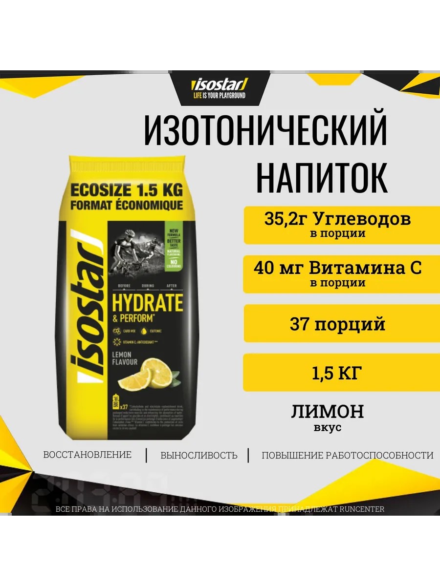 Isostar Hydrate & Perform Ecosize изотонический напиток с экстрактом лимона, предназначенный для обеспечения спортсмена необходимым количеством жидкости, энергии и микроэлементов до, во время и после тренировки. Специальная изотоническая формула обеспечивает более быстрое поглощение жидкости в организме. Питье перед тренировкой обеспечит вас необходимым запасом жидкости. Потребление жидкости во время упражнений поможет улучшить работоспособность и выносливость за счет снижения риска желудочно-кишечных проблем. Применение продукта после загрузки обеспечит лучший процесс восстановления. Напиток является отличным источником энергии и микроэлементов, особенно кальция и магния, обеспечивая мышечную функцию во время тренировок и восстановления. Он содержит богатую дозу витамина B1, которая обеспечивает преобразование питательных веществ в энергию.