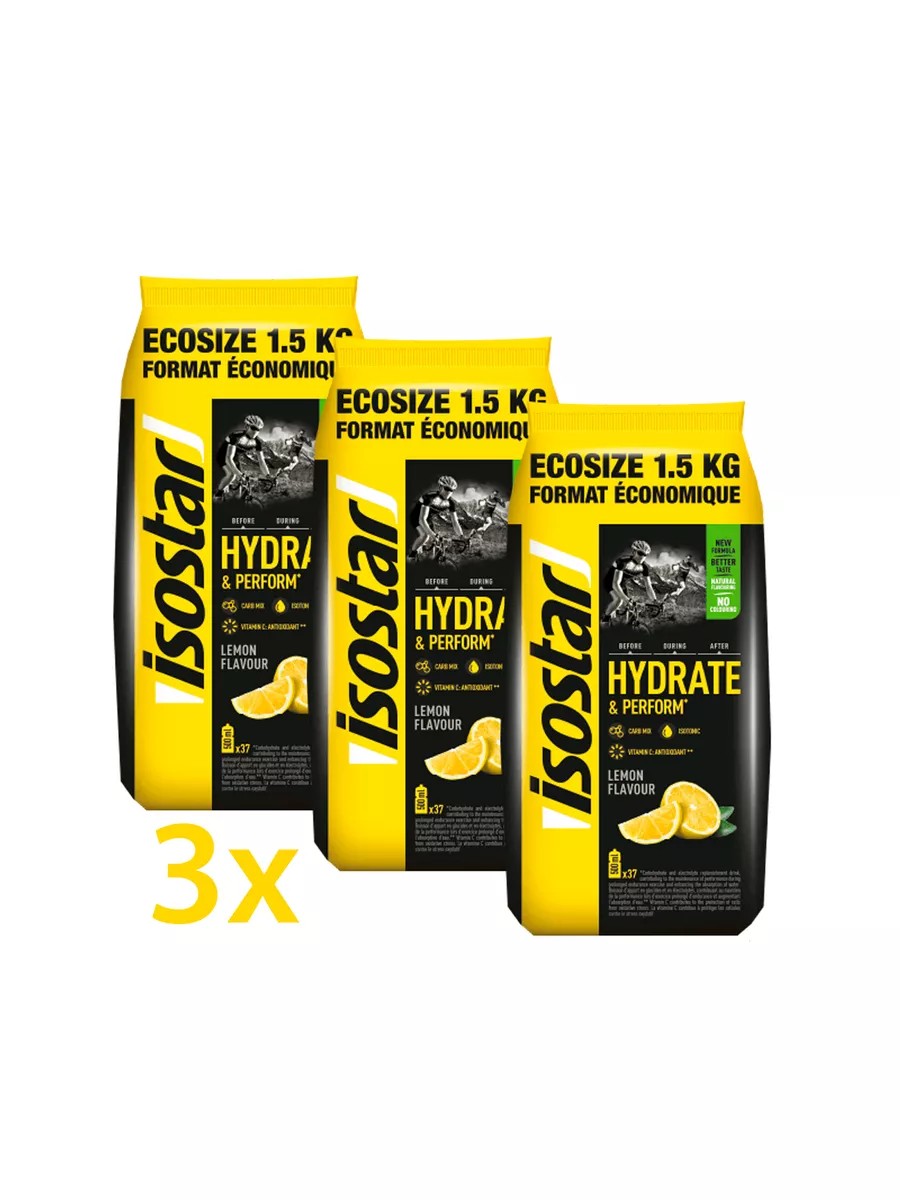 Isostar Hydrate & Perform is an isotonic drink with lemon extract designed to provide athletes with the necessary amount of fluid, energy, and micronutrients before, during, and after training.