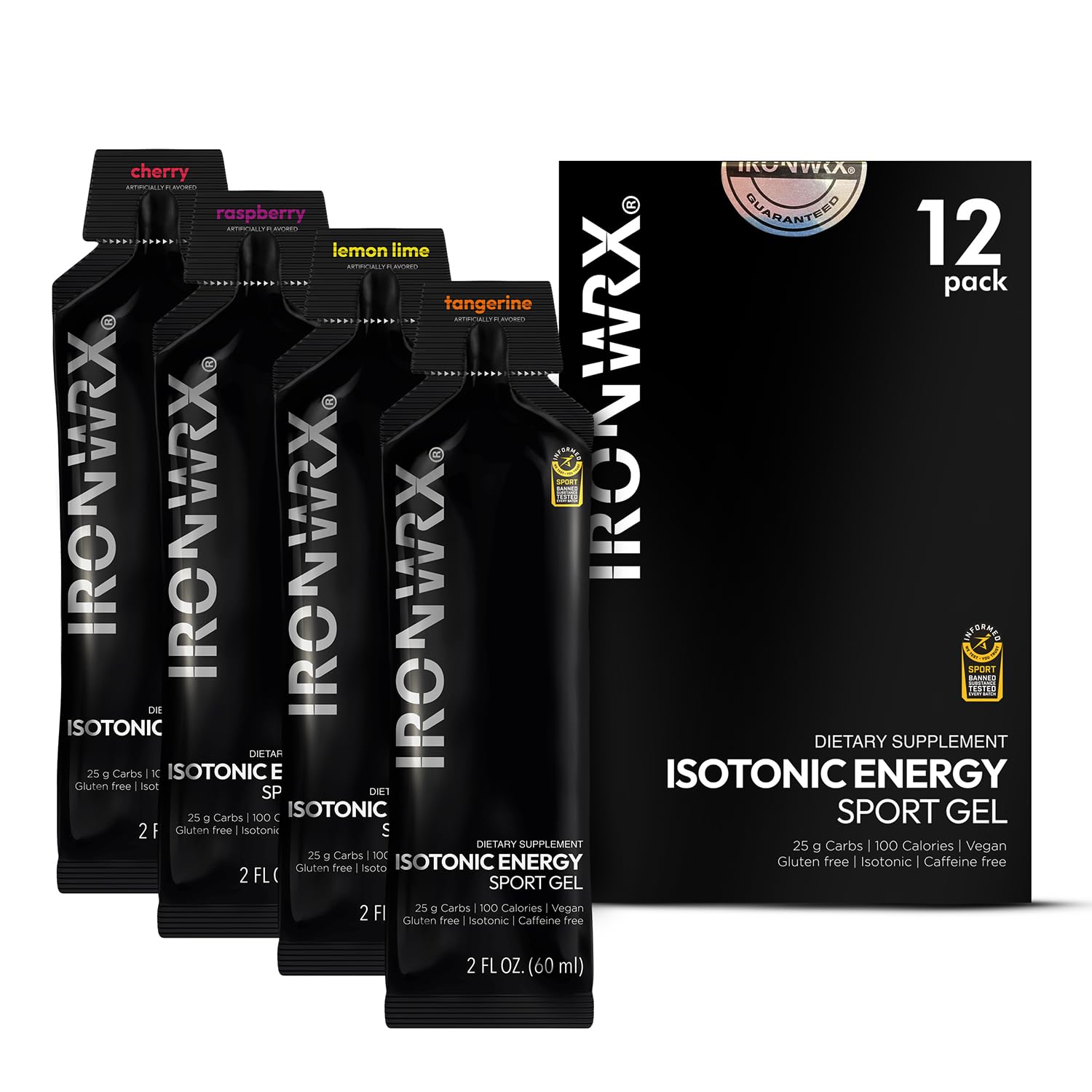 CLEAN, PORTABLE BANNED SUBSTANCE FREE: Designed for convenience, these gluten-free single-serve sachets fit easily into running belts, bike jerseys, or tri-suits. Informed Sport Certified and third-party tested, ensuring they are free of banned substances and produced in a world-class FDA-registered, GMP-compliant facility. IMMUNE RECOVERY SUPPORT: Fortified with 90mg of Vitamin C (100 DV) per serving, our gels help combat the oxidative stress caused by strenuous exercise. With 100 calories per gel, you get the precise fuel needed to power through "the wall" and maintain your pace from start to finish. STOPS FLAVOR FATIGUE: Don't get stuck with just one taste on race day. Our 24-count variety pack includes four refreshing, subtly flavored options: Raspberry, Tangerine, Cherry, and Lemon Lime. Formulated to be light and palatable, these gels are easy to swallow even during high-intensity exertion. ELITE ELECTROLYTE REPLENISHMENT: Each 2 fl oz gel is packed with 115mg of Sodium and 35mg of Potassium to help prevent muscle cramps and maintain fluid balance. Whether you're hitting Mile 20 of a marathon or hour 3 of a century ride, IRONWRX keeps your mineral levels optimized for peak performance. RAPID ISOTONIC ENERGY: Engineered for instant absorption, our isotonic formula matches the concentration of your blood for fast gastric emptying. This means 25g of clean carbohydrates hit your bloodstream quickly to replenish glycogen stores without the "heavy" stomach feeling or GI distress often caused by thicker, concentrated gels.
