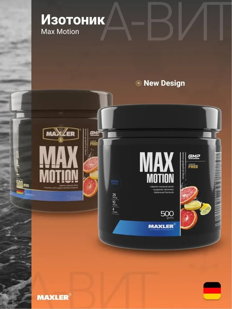 **Maxler Max Motion -** витаминный комплекс для приготовления изотонического напитка. Maxler Изотоник предназначен для восполнения в организме витаминов и минералов, утраченных в результате физических нагрузок, что в свою очередь дает большую эффективность и качество тренировок. Продукт создан для людей, занимающихся игровыми, силовыми видами спорта, фитнесом либо просто ведущих активный образ жизни. Макс моушен Макслер - это баланс витаминов и минералов, быстрое восстановление организма, низкая калорийность. Производится в 4 вкусах: вишня, апельсин, абрикос-манго, лимон-грейпфрут. Рекомендации по применению:** для получения одной порции смешайте 20 г (1 мерную ложку) с 500 мл воды. Рекомендуется принимать до и во время нагрузки. Для лучших результатов сочетайте прием изотоник Max Motion с другими продуктами Maxler: Creatine ( креатин ) Макслер для силы и восстановления, L citrulline (цитруллин) для восстановления и питания мышц, Glucosamine Chondroitin MSM ( глюкозамин хондроитин МСМ ) для защиты суставов во время силовых тренировок, с аминокислотами Аргинин ( Arginine ), Орнитин ( Ornithine ), Лизин ( Lysine ), как в составе комплекса, так и отдельно, Бета Аланин ( Beta-Alanine ), Глутамин ( Glutamine), энергетик Black Kick для выносливости и увеличения времени тренировок, протеин ( сывороточный протеин) Golden Whey как источник белка, электролит Electrolyte Powder для поддержания водного баланса в организме, Гидролизованный коллаген Collagen Hydrolysate для защиты суставов и связок во время тренировок, рыбий жир Омега 3 ( Omega 3 Gold ) защита сердца при больших нагрузках, комплекс витаминов для мужчин с высокой спортивной нагрузкой VitaMen, витамины для женщин с большой физической нагрузкой VitaWomen, жиросжигатель L-Carnitine для похудения.