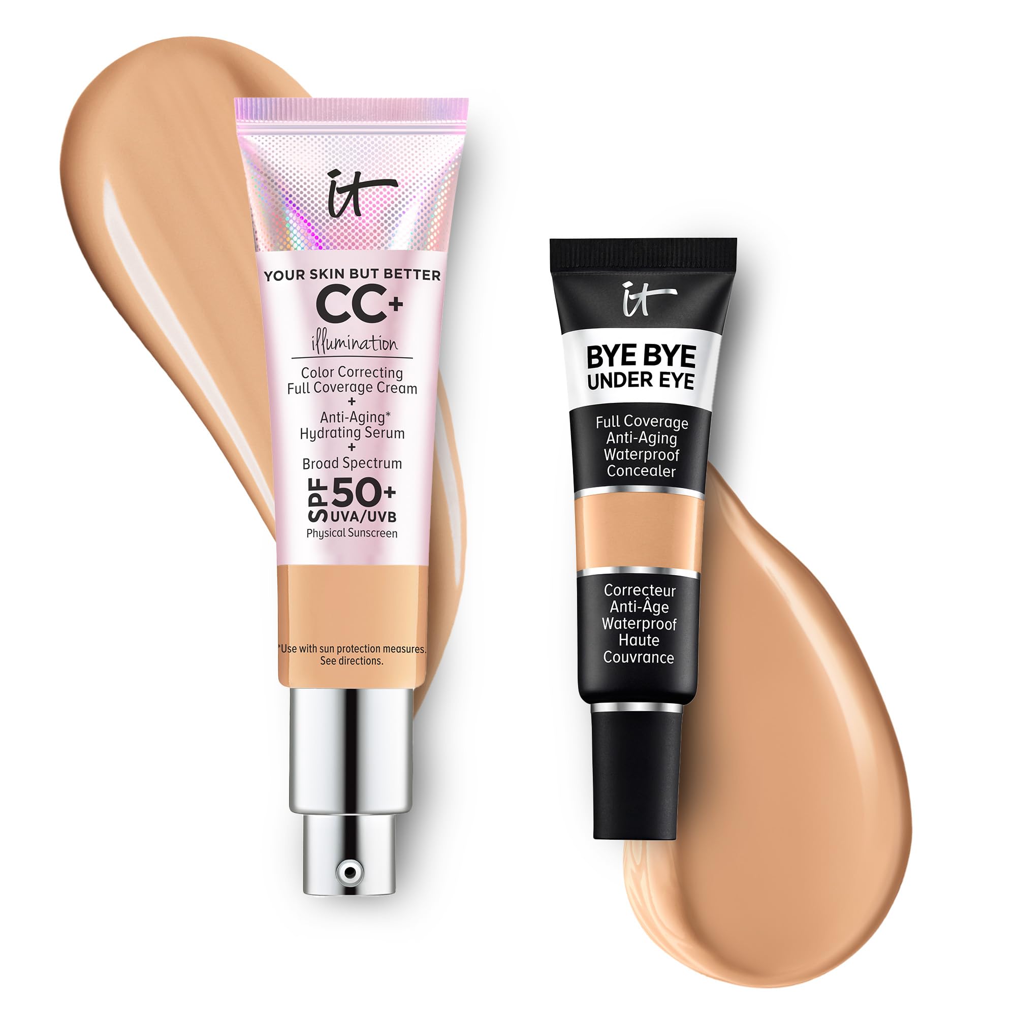 IT Cosmetics CC+ Cream Illumination with SPF 50+ Radiant Full Coverage Foundation (Medium Tan - 1.08 fl oz) & Bye Bye Undereye Concealer Anti-Aging Makeup (25.0 Medium Natural - 0.4 fl oz)