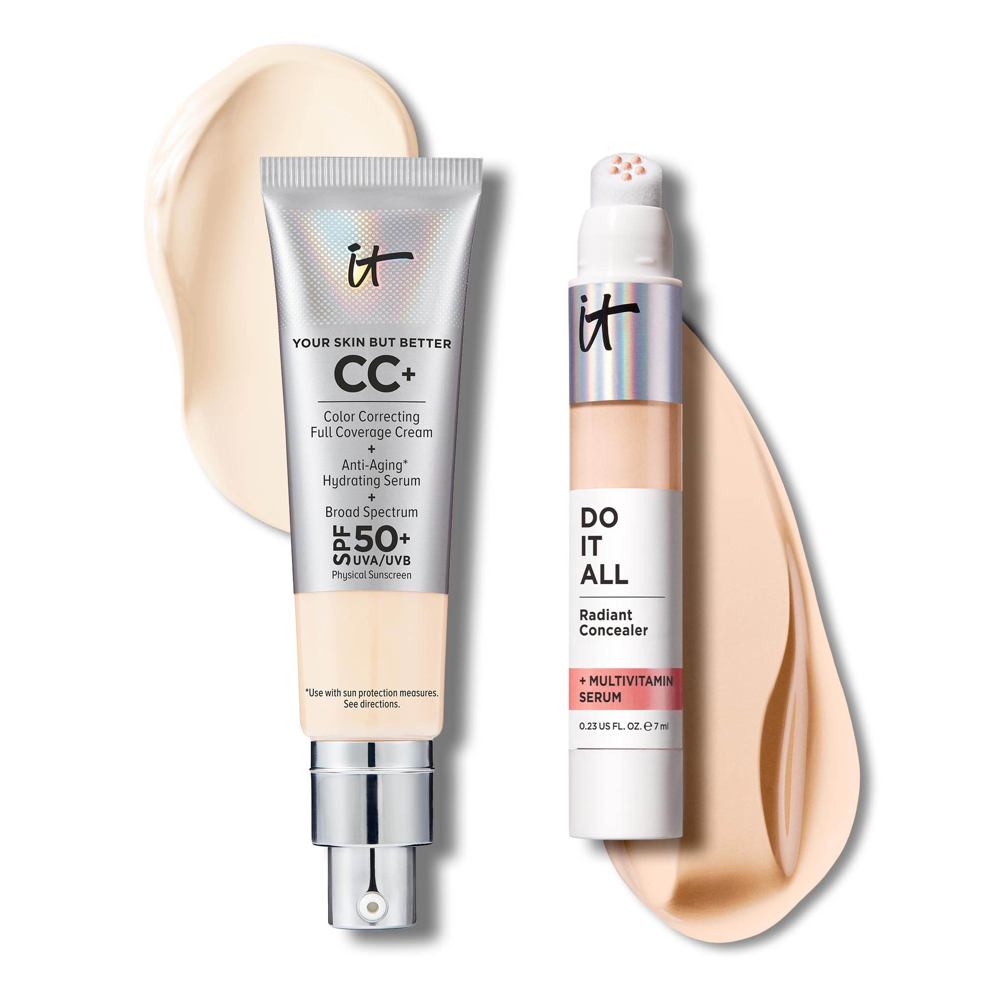 IT Cosmetics CC+ Cream with SPF 50+ Natural Finish Full Coverage Foundation (Fair - 1.08 fl oz) & Do It All Radiant Concealer Multivitamin Serum Makeup (120 Fair Warm - 0.2 fl oz)