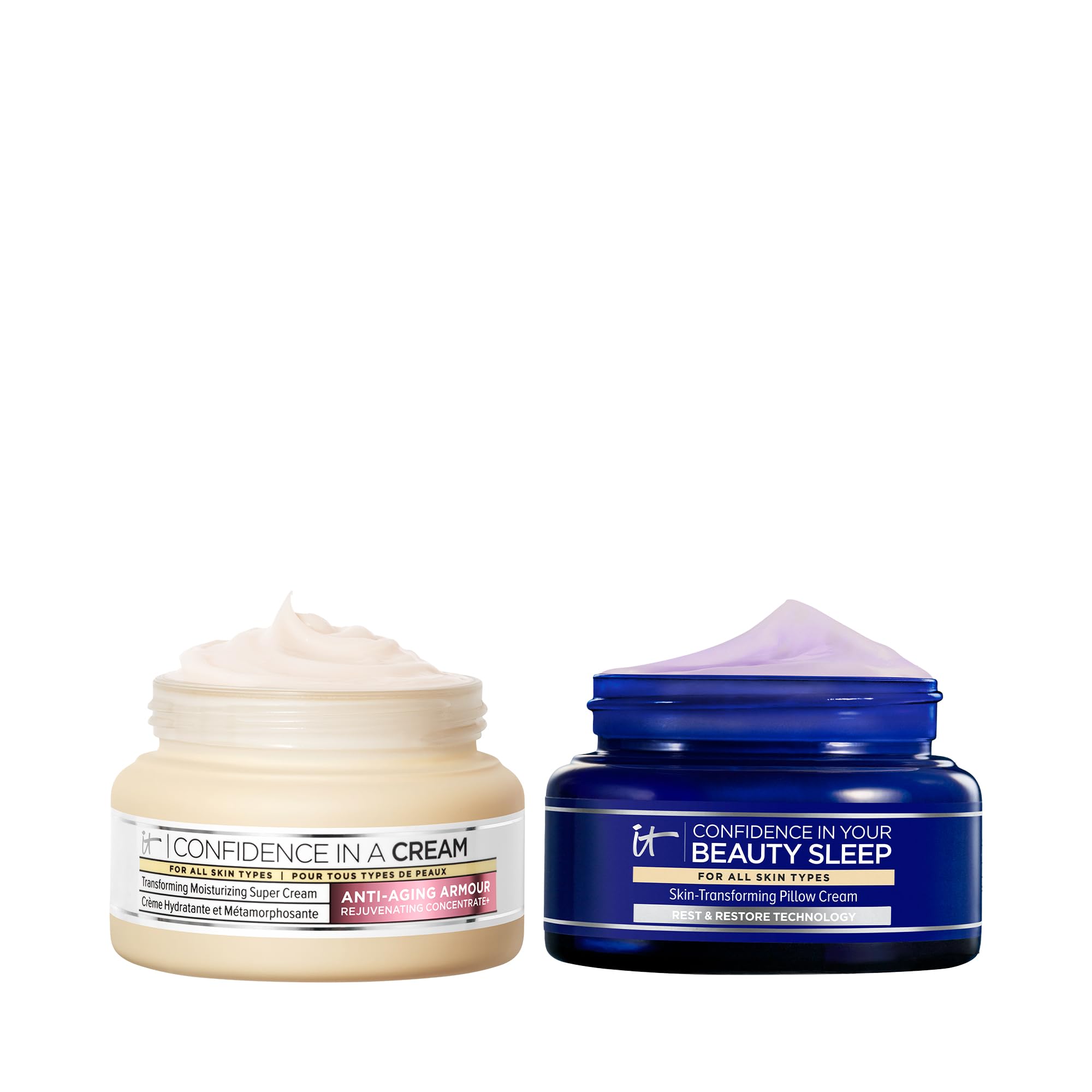 IT Cosmetics Confidence in a Cream & Confidence in Your Beauty Sleep Cream - Anti Aging Ceramides Face Moisturizer (2 fl oz) - Skin Barrier Repairing Night Moisturizer (2 fl oz)