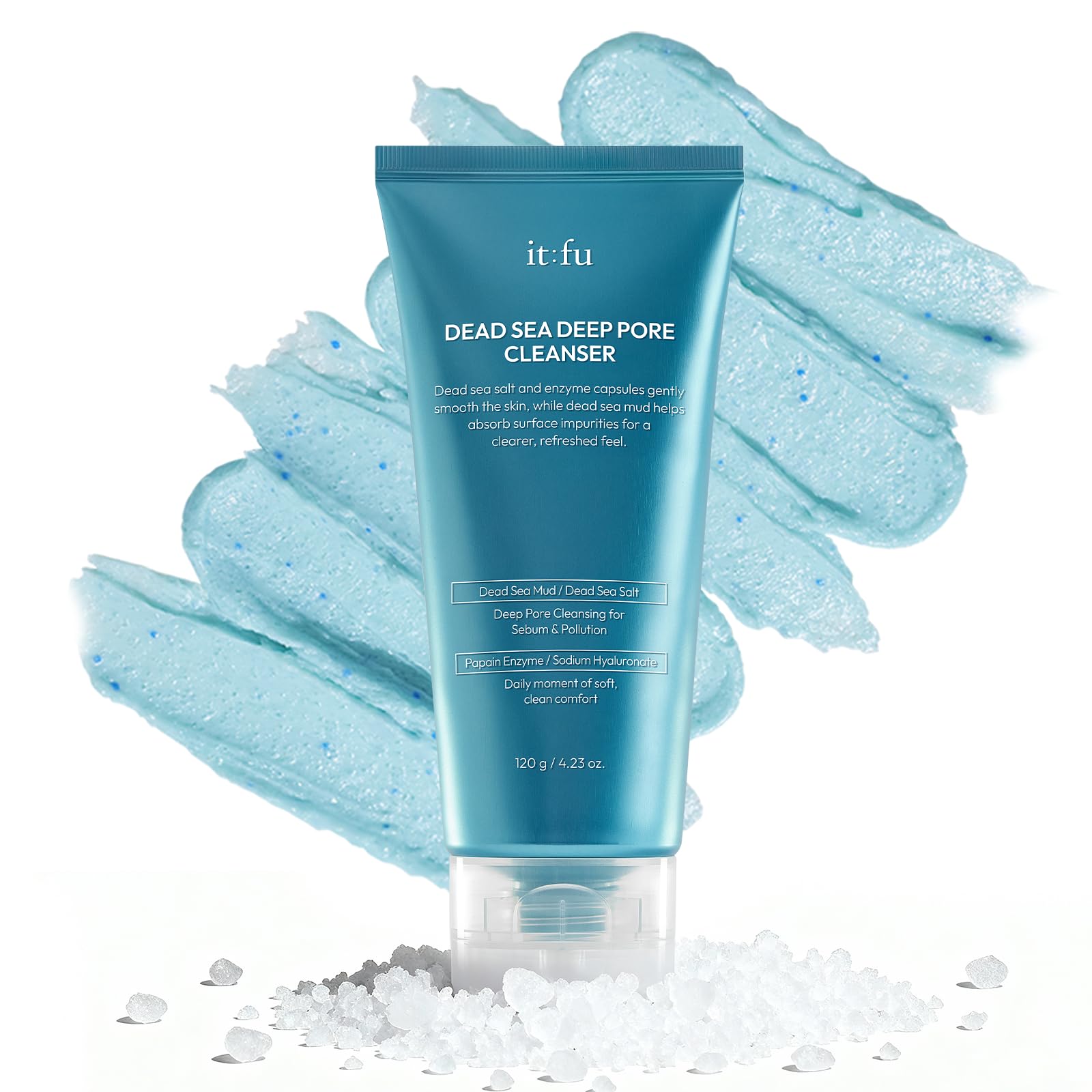 it:fu Deep Pore 2-in-1 Exfoliating Cleanser | Korean Hydrating Face Cleanser | Fungal & Hormonal Acne Support | Enzyme & Dead Sea Mud Formula (4.23 fl. oz)