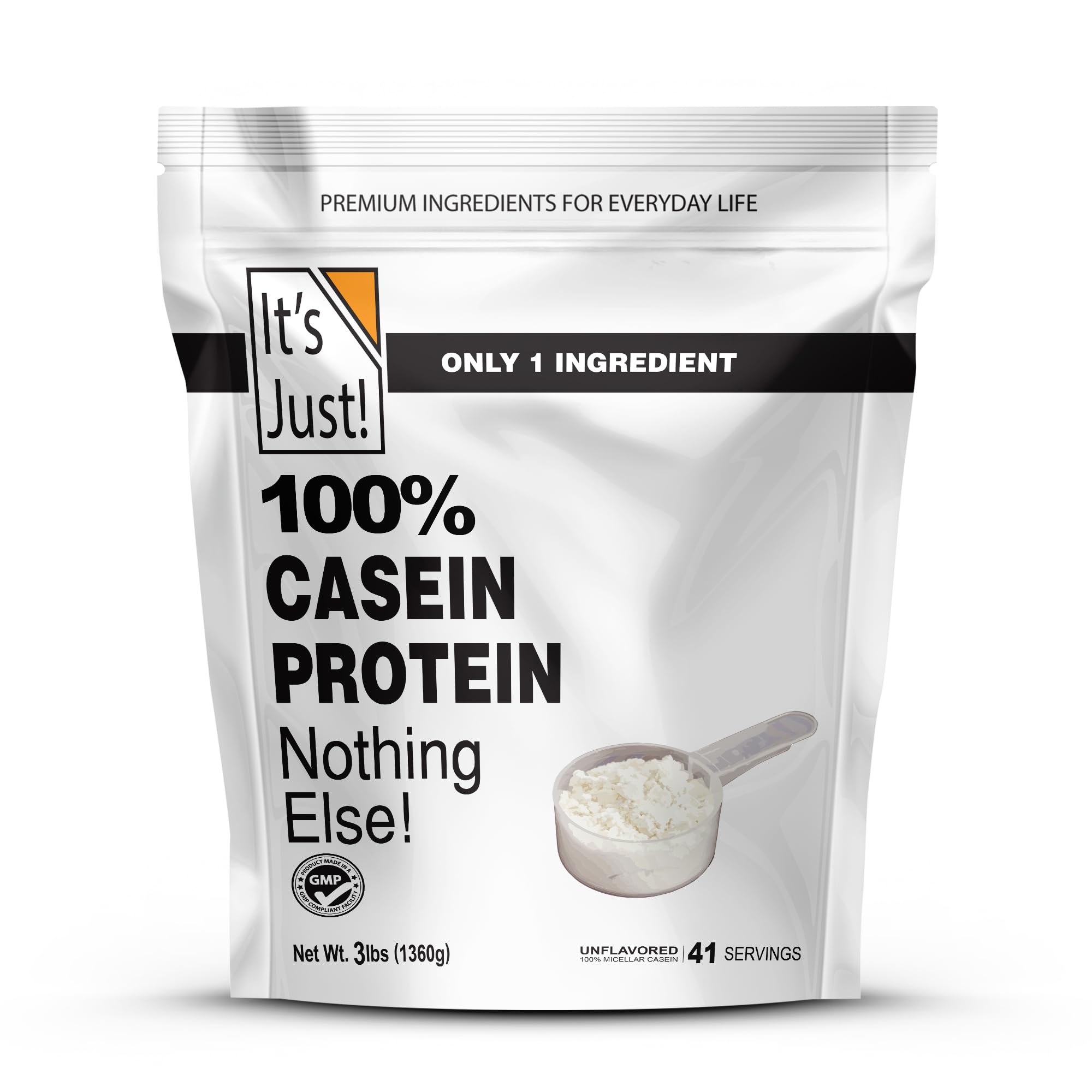 It's Just! - 100% Casein Protein Powder Made in USA One Ingredient Slow Burning Time Release 6.9g BCAAs 1g Carb Non-GMO (Unflavored 3lbs/48oz) Unflavored 3 Pound (Pack of 1)