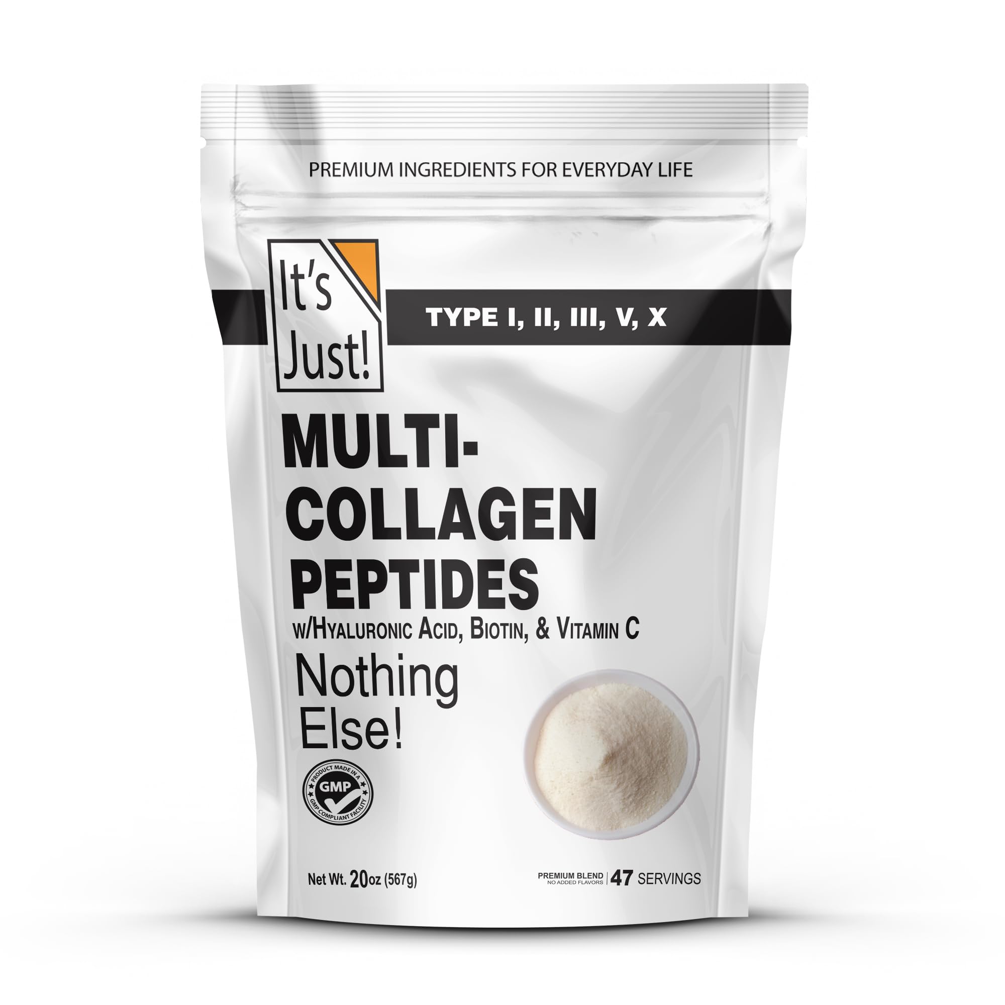 It's Just! - Multi Collagen Peptides (Types I II III V X) w/Vitamin C Biotin Hyaluronic Acid No Added Flavor Tested for Heavy Metals Gluten Free Non-GMO Unflavored / 20oz