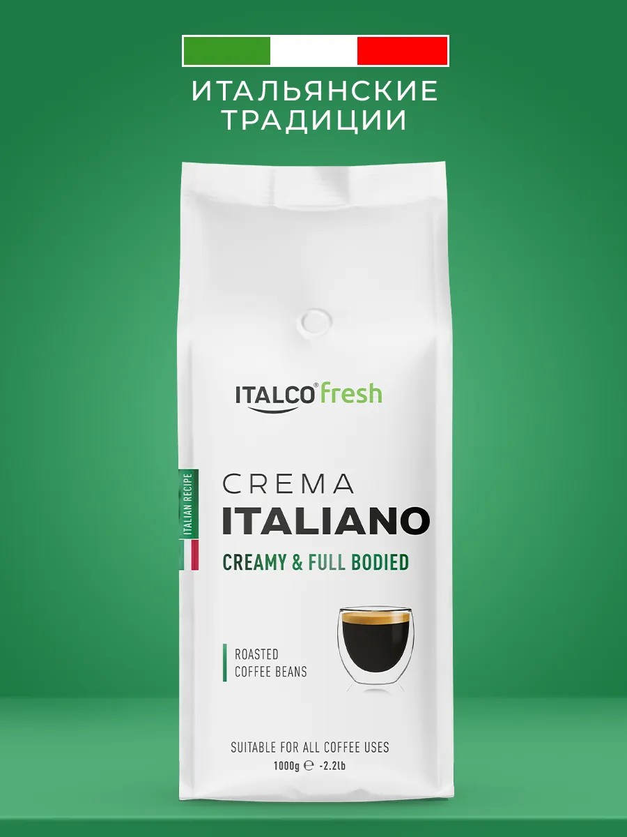 Italco Crema Italiano 1kg Coffee Beans is a classic Italian blend. You've probably seen Italco coffee on the shelves of grocery chains. Italco Fresh coffee is produced in Russia using Italian technology. Our whole-bean coffee is packaged in a foil bag with a degassing valve. Everything from roasting to packaging strictly complies with European standards. We strive to match the standards of European manufacturers so you can enjoy a high-quality drink at more affordable prices. This coffee is based on a classic Italian coffee recipe. Italco Crema Italiano whole-bean coffee is a blend of Arabica and Robusta. Arabica is needed for a vibrant flavor and aroma, while Italians typically add Robusta for the drink's body, strength, and brown foam (professional baristas call it Crema). Italco Crema Italiano whole-bean coffee has a balanced flavor with notes of caramel and natural cocoa. It's the perfect coffee for your coffee machine. But you can also prepare it any other way: in a drip coffee maker, in a Turkish coffee pot, brew it in a French press, or directly in a mug by simply adding hot water (recommended water temperature: 92-95 degrees Celsius). Italco Crema Italiano whole bean coffee is suitable for making any Italian coffee drink: cappuccino, latte, espresso, and more. This blend is suitable for both coffee shops, cafes, and home use.