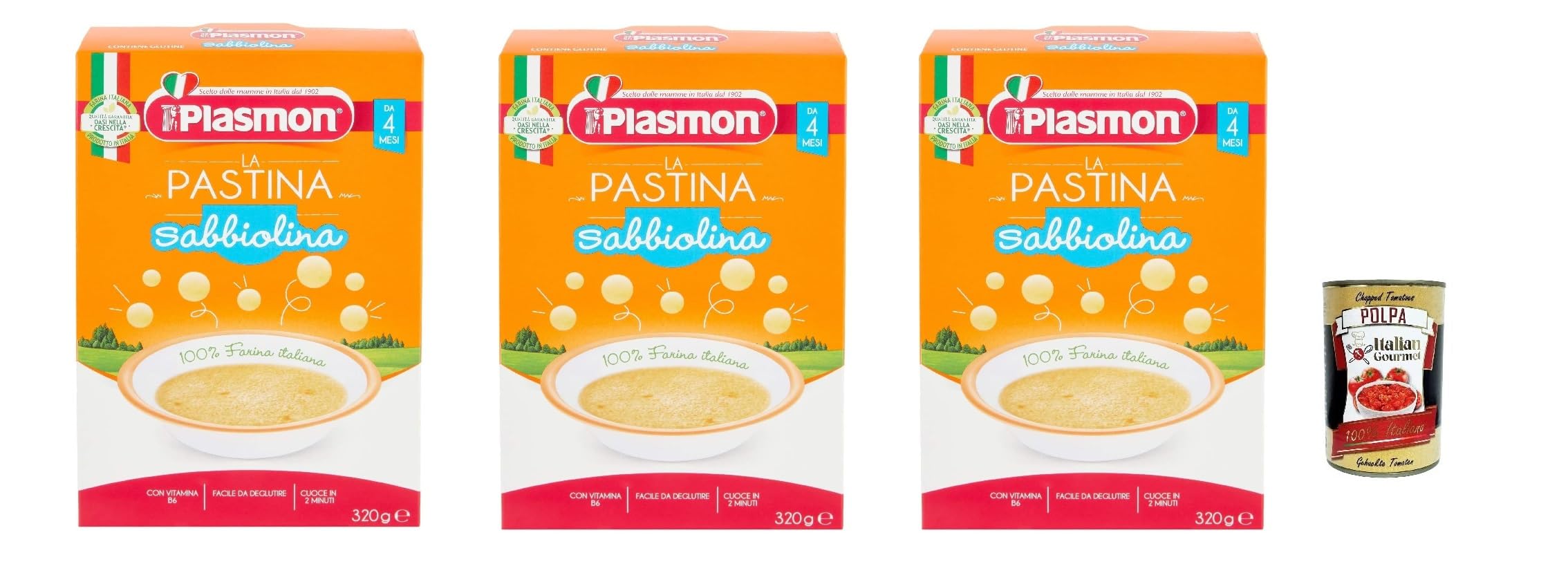 3 pâtes à plasmon sabbiolina 320 g da 4 mesi Italian Gourmet Polpa 400 g