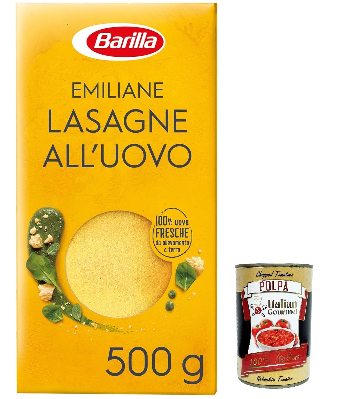 Italian Gourmet E.R. 3 x Barilla Egg Pasta Le Emiliane Lasagne Egg Noodles Pasta with Egg 500g + Italian Gourmet Polpa 400g