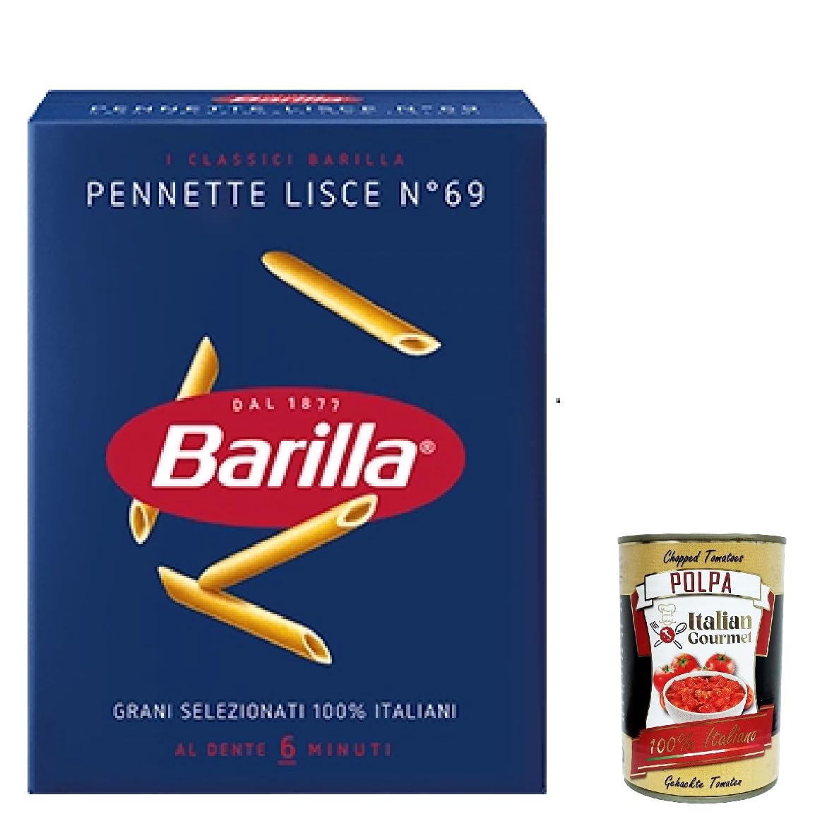 Italian Gourmet E.R. 5 x Barilla Pennette Lisce Pasta No. 69 100% Italian Noodles 500g + Italian Gourmet Pulp 400g