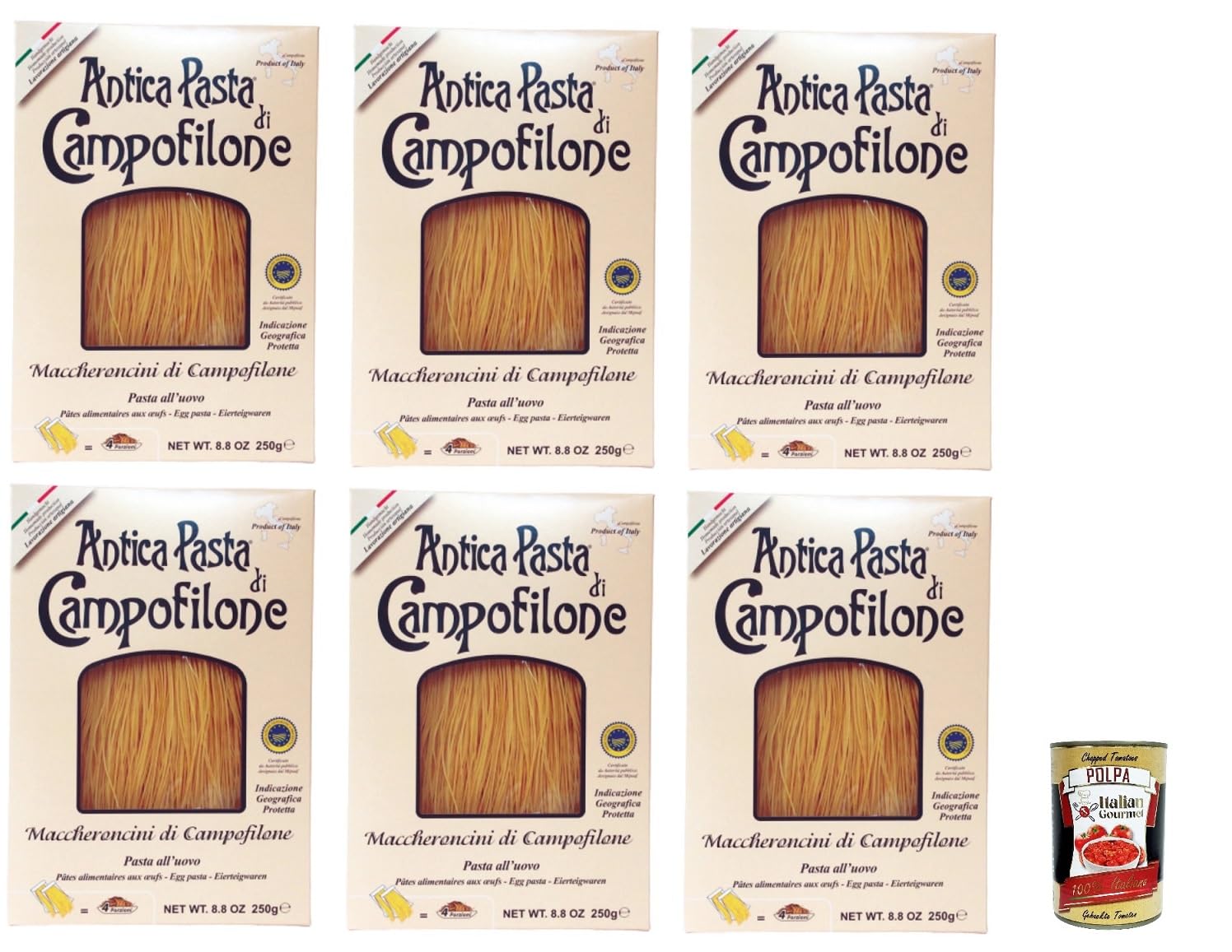 Italian Gourmet E.R. 6 x Antica Pasta di Campofilone Maccheroncini 250 g + Gourmet Italian Pulp 400 g