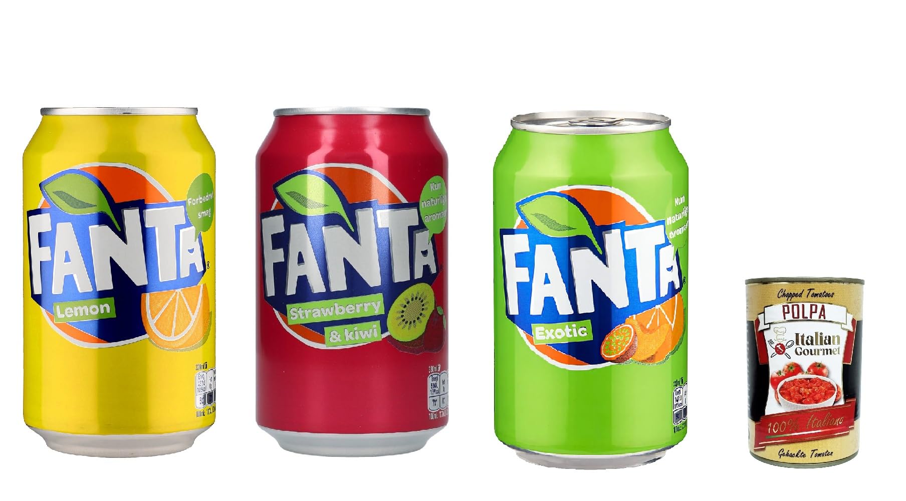 Italian Gourmet E.R. 72 x Fanta Lemon Soft Drinks - Strawberry & Kiwi - Exotic - 330ml - Refreshing Drink 330ml + Italian Polpa Gourmet 400g