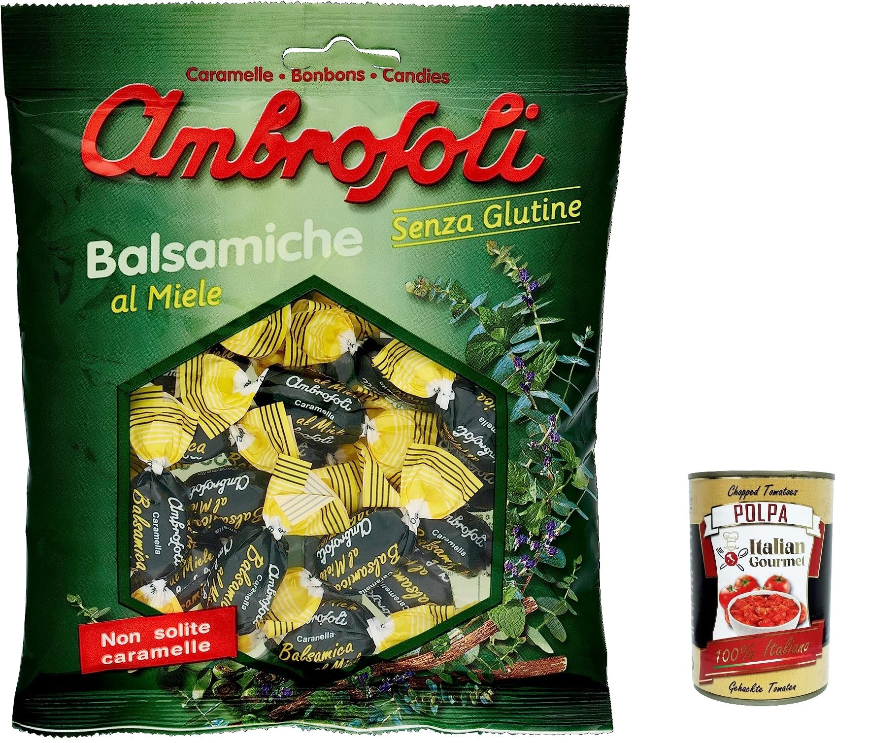Italian Gourmet E.R. Ambrosoli Caramella Balsamic Candy 135g + Italian Gourmet Pulp 400g Pack of 6