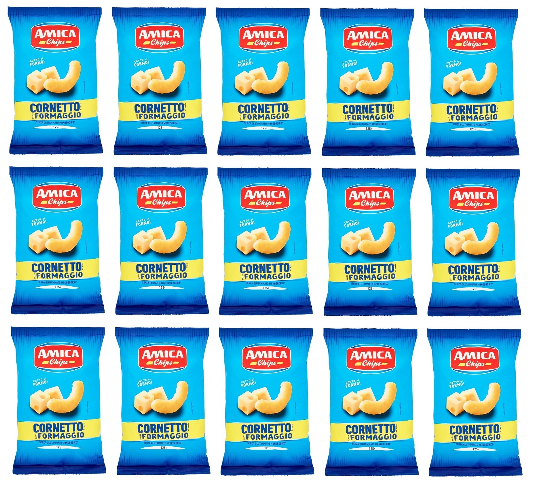 Italian Gourmet E.R. Amica Chips Cornetto al Formaggio Corn Snacks with Cheese Flavor Salty Snack 125 g 15 Count