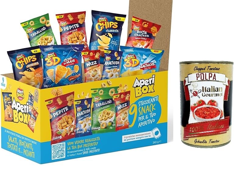 Italian Gourmet E.R. APERIBOX 9 Box of Chips and Savory Snacks 263g 9 Pieces Gift Idea 2023 + Italian Gourmet Polpa 400g
