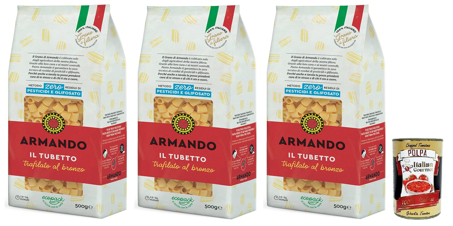 Italian Gourmet E.R. Armando Il Tubetto 100% Italian Bronze Pasta 500 g + 400 g Box of 3