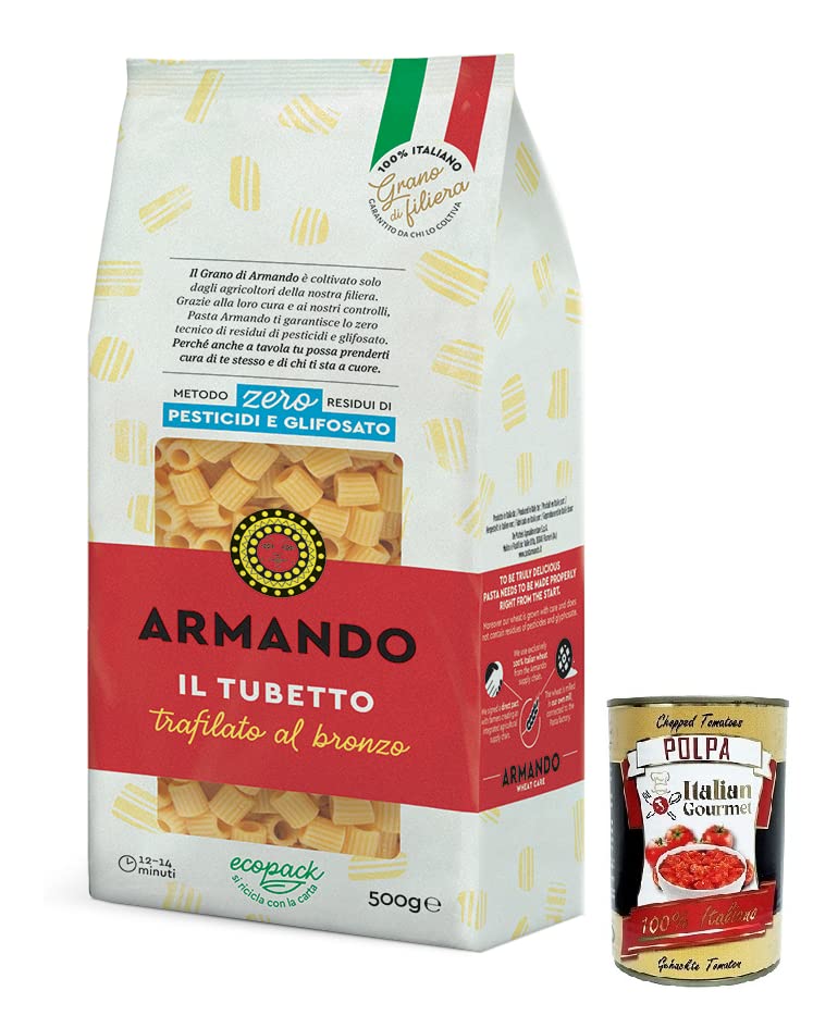 Italian Gourmet E.R. Armando Il Tubetto Pasta 100% Italian 500 g + Tomato Pulp Italian Gourmet Tomato Pulp 400 g Box