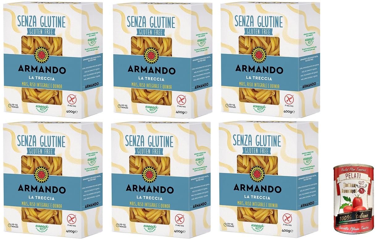 Armando, La Treccia, nouilles multi-grains sans gluten avec maïs, riz brun et quinoa 400 g pelati italien gourmet 400 g