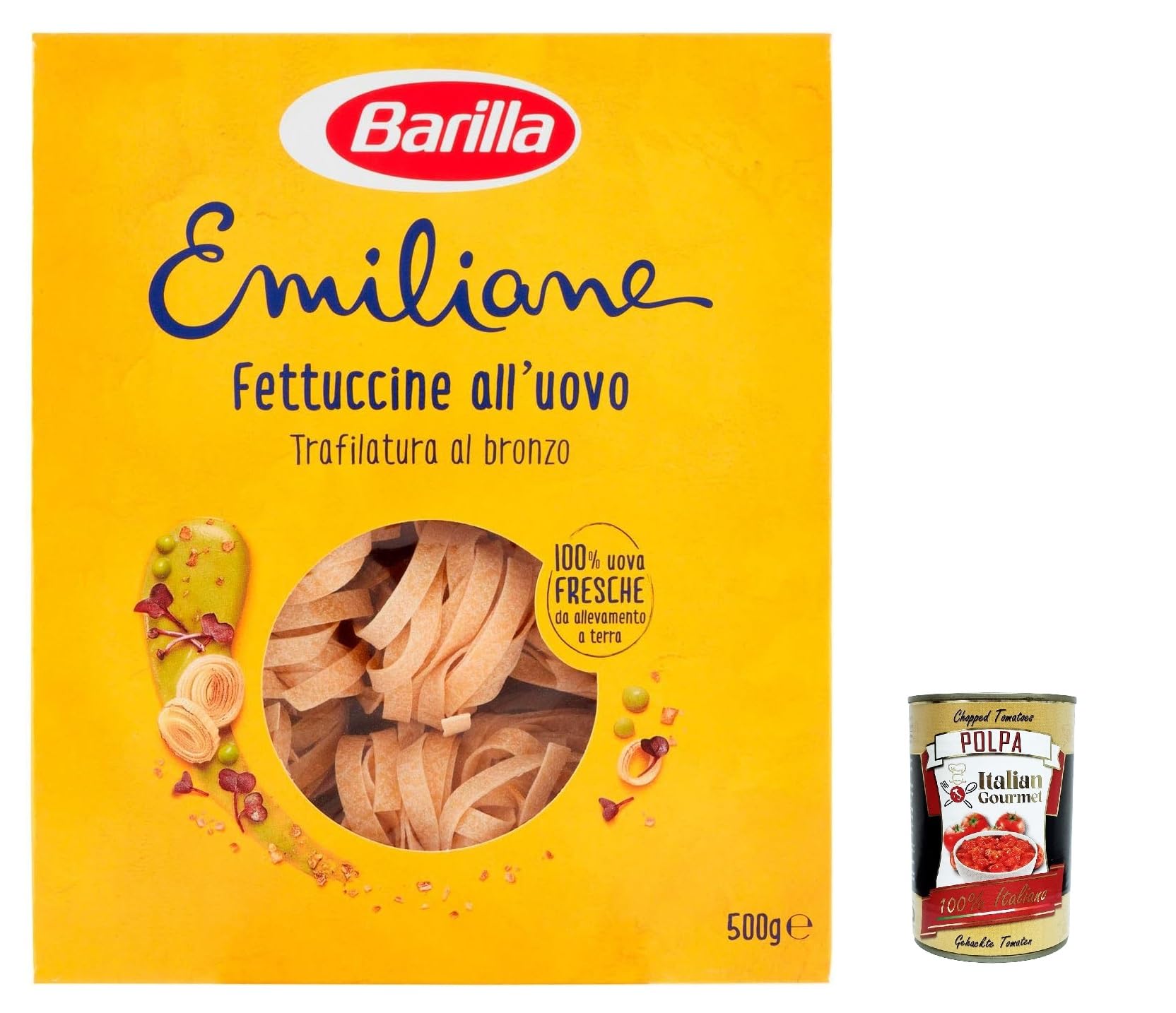 Italian Gourmet E.R. Barilla Egg Pasta Le Emiliane Fettuccine Egg Pasta 500g + Italian Polpa Gourmet 400g (Pack of 12)