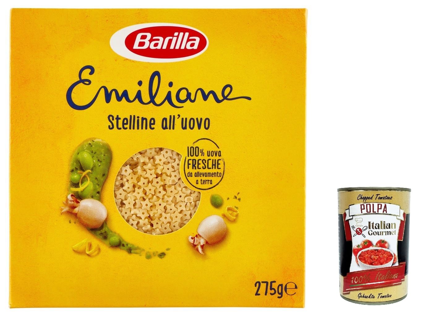 Italian Gourmet E.R. Barilla Egg Pasta Le Emiliane Stelline Egg Pasta 275g + Italian Polpa Gourmet 400g (Pack of 10)