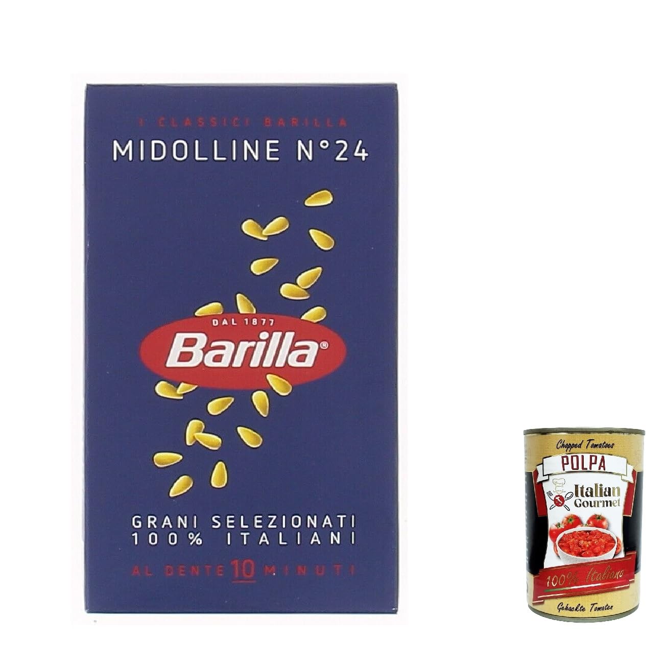 Italian Gourmet E.R. Barilla Midolline No. 24 Pack of 5 packs of 100% Italian pasta 500g + Italian gourmet polpa 400g