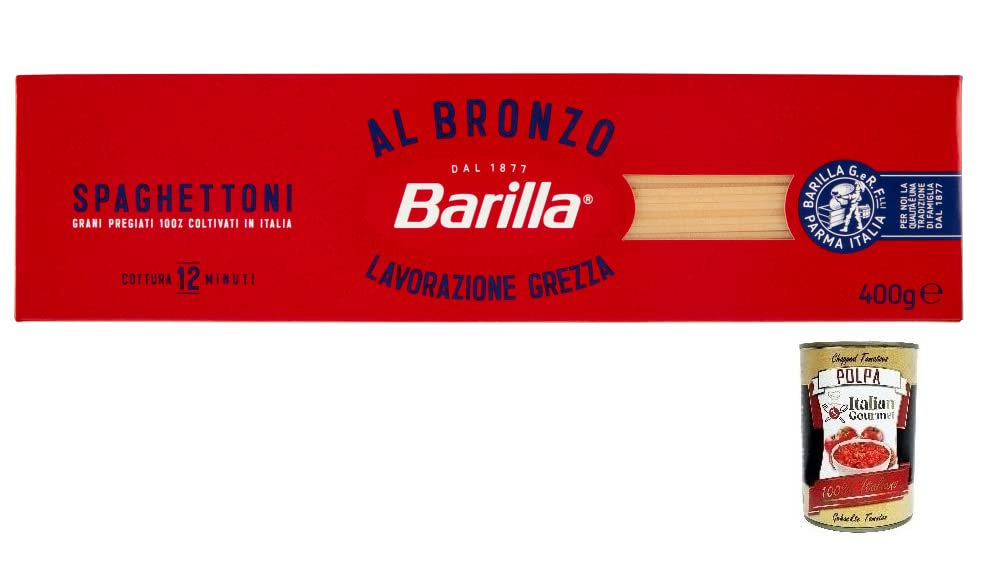 Italian Gourmet E.R. Barilla Pasta Al Bronzo Spaghettoni 100% Italian Wheat Bronze Design Italian Pasta 400g + 400g Box
