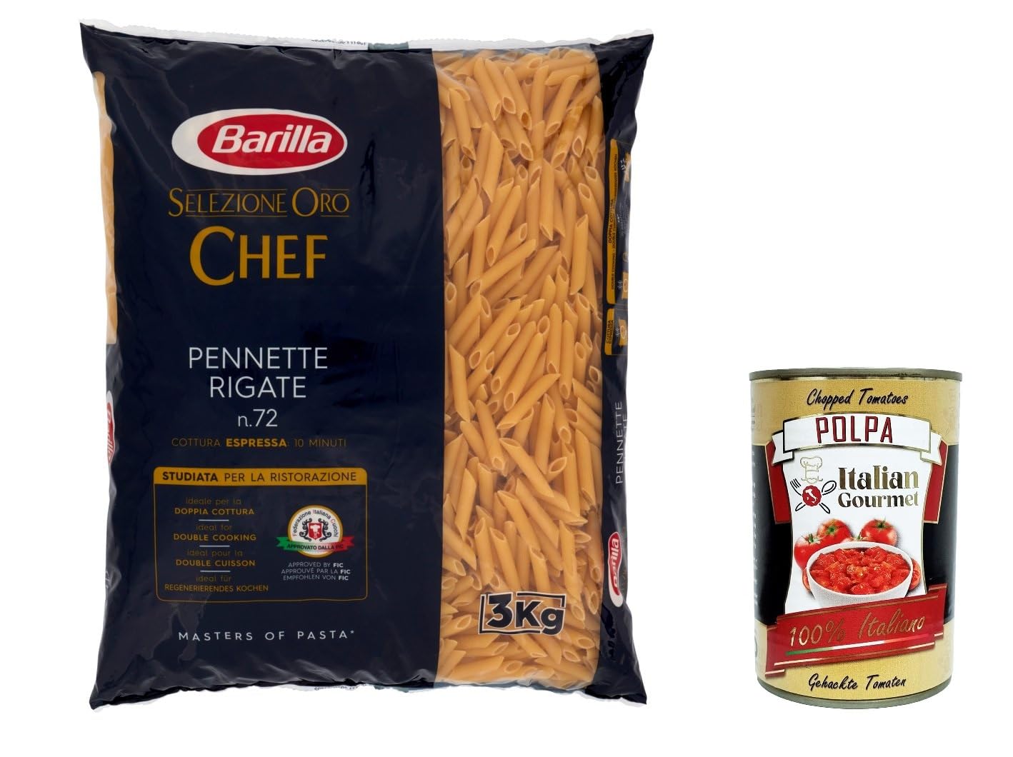 Italian Gourmet E.R. Barilla Pasta Selezione Oro Chef Pennette Rigate N 72 Lot de 6 p tes italiennes 3 kg + Polpa Italian Gourmet 400 g