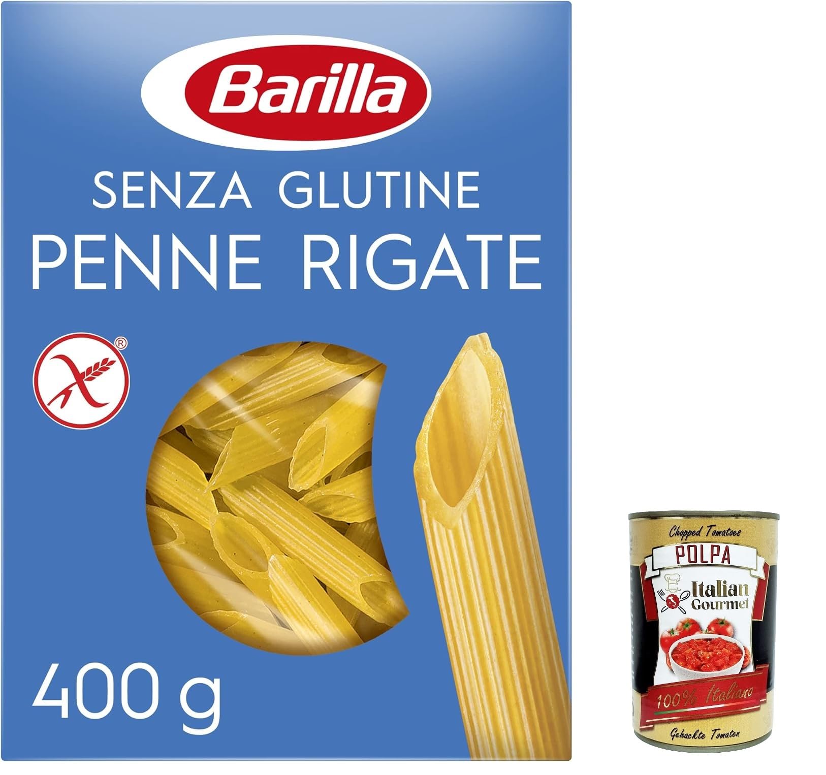 Italian Gourmet E.R. Barilla Penne Rigate Gluten Free Pasta 400g + Italian Gourmet Pulp 400g (Pack of 20)
