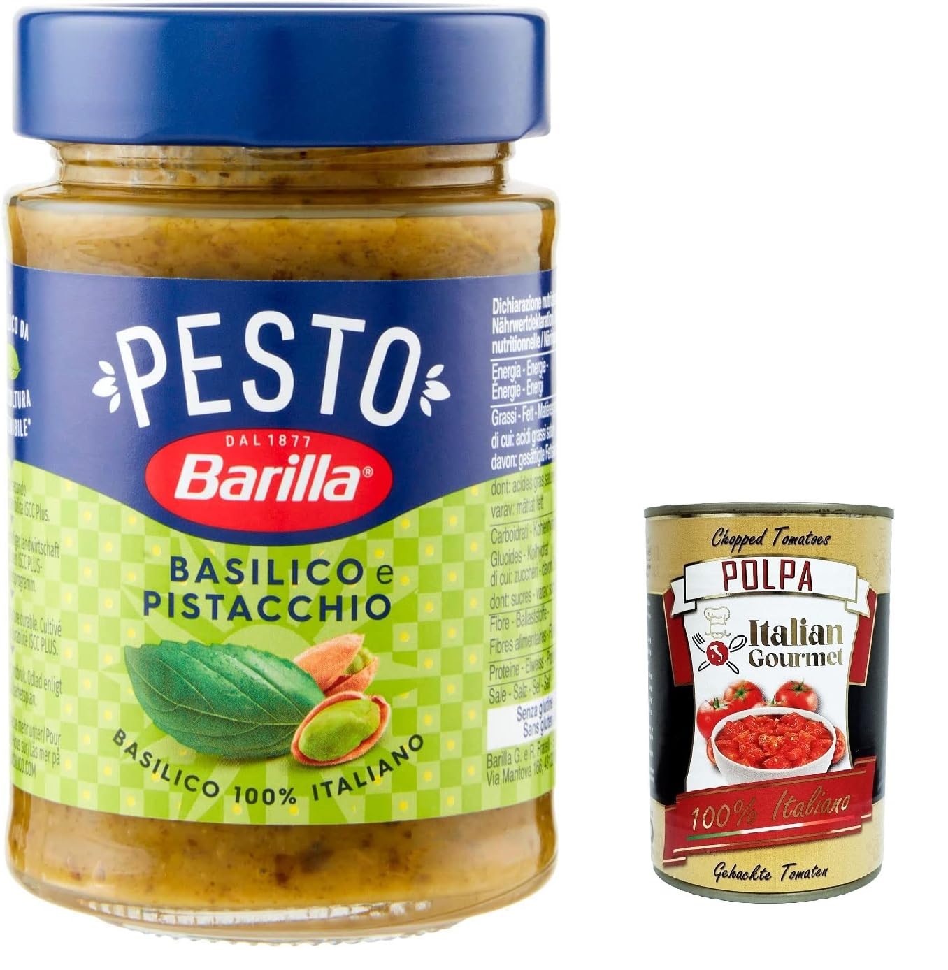 Italian Gourmet E.R. Barilla Pesto Basilico e Pistacchio Pesto au basilic et pistaches issus de l'agriculture durable 190 g Sauce italienne sans gluten + polpa italien 400 g