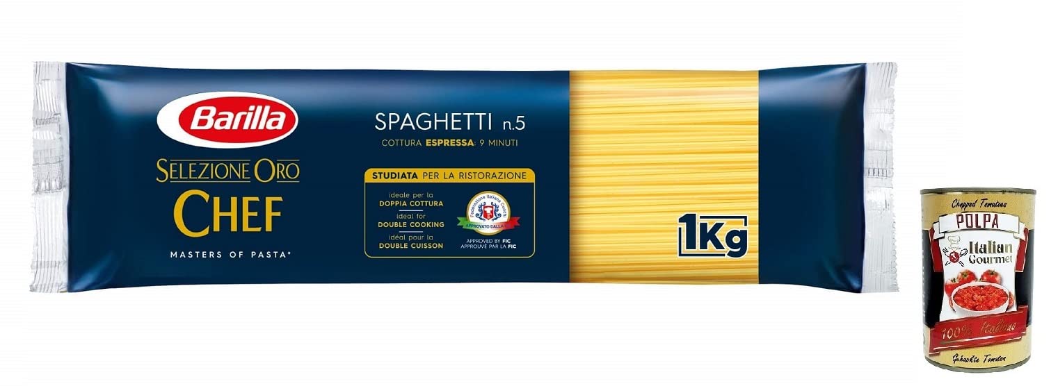 Italian Gourmet E.R. Barilla Selezione Oro Chef Spaghetti No. 5 durum wheat semolina 100% Italian grains 1 kg pack + 400 g box