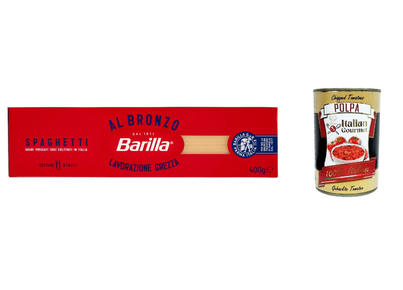 Italian Gourmet E.R. Barilla Spaghetti al Bronzo Bronze 400g Raw Processing Method + Italian Gourmet Pulpa 400g (Pack of 10)
