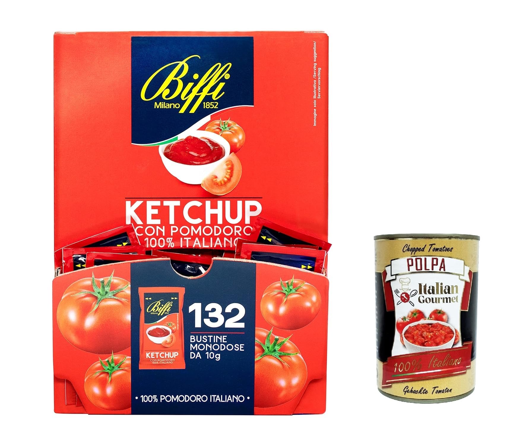 Italian Gourmet E.R. Biffi 132 Pack of 3 Ketchup Sauces 10g Ideal for chips hamburger buns and sandwiches + Italian gourmet polpa 400g