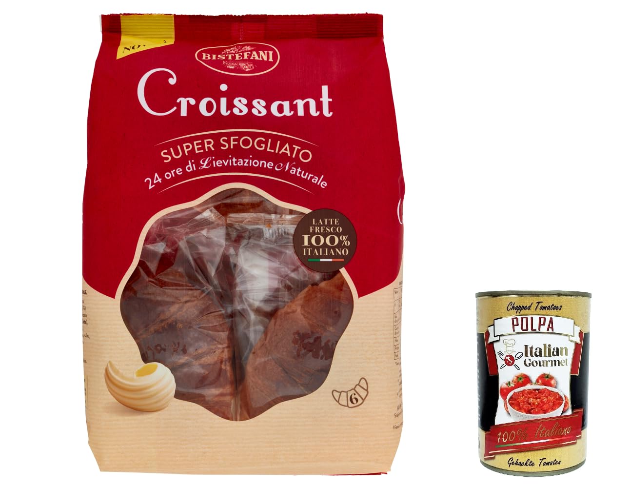Italian Gourmet E.R. Bistefani Super Sfogliato Croissant Pack of 6 naturally acidified baked goods 180g pack each pack contains 6 croissants from 30g + Italian Gourmet Polpa di Pomodoro