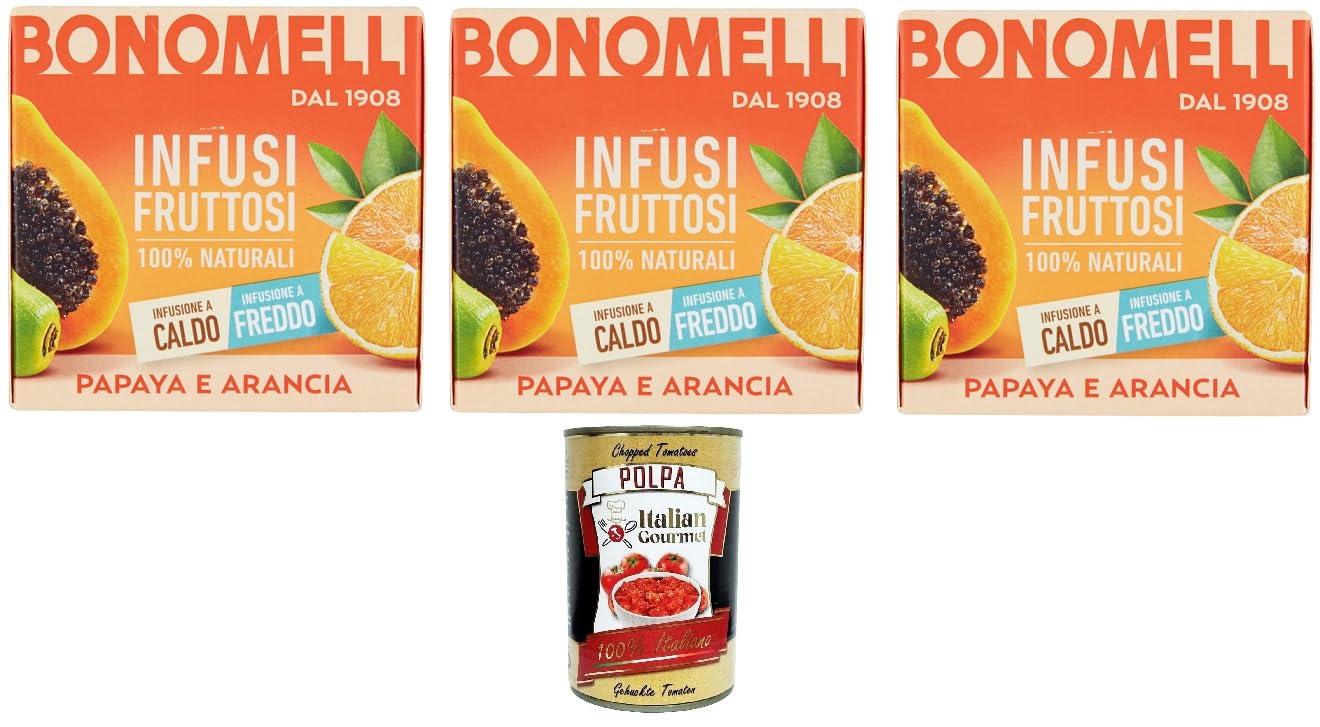 Bonomelli Lot de 3 infusions de fruits 100 naturelles Papaye et Orange Lot de 12 filtres Italian Gourmet Polpa 400 g