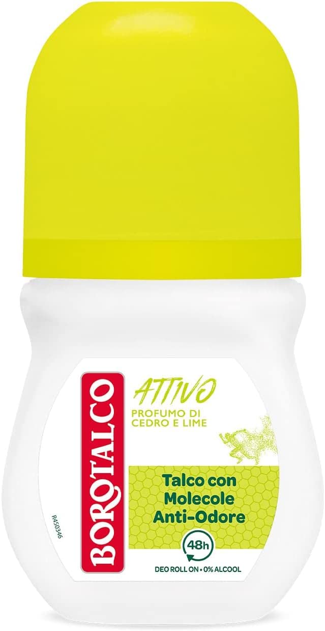 Borotalco Lot de 6 déodorants Roll On Active Giallo sans alcool et avec talc avec molécules anti-odeurs, 48h, parfum de cèdre et de citron vert, 50 ml Polpa italien Gourmet 400 g