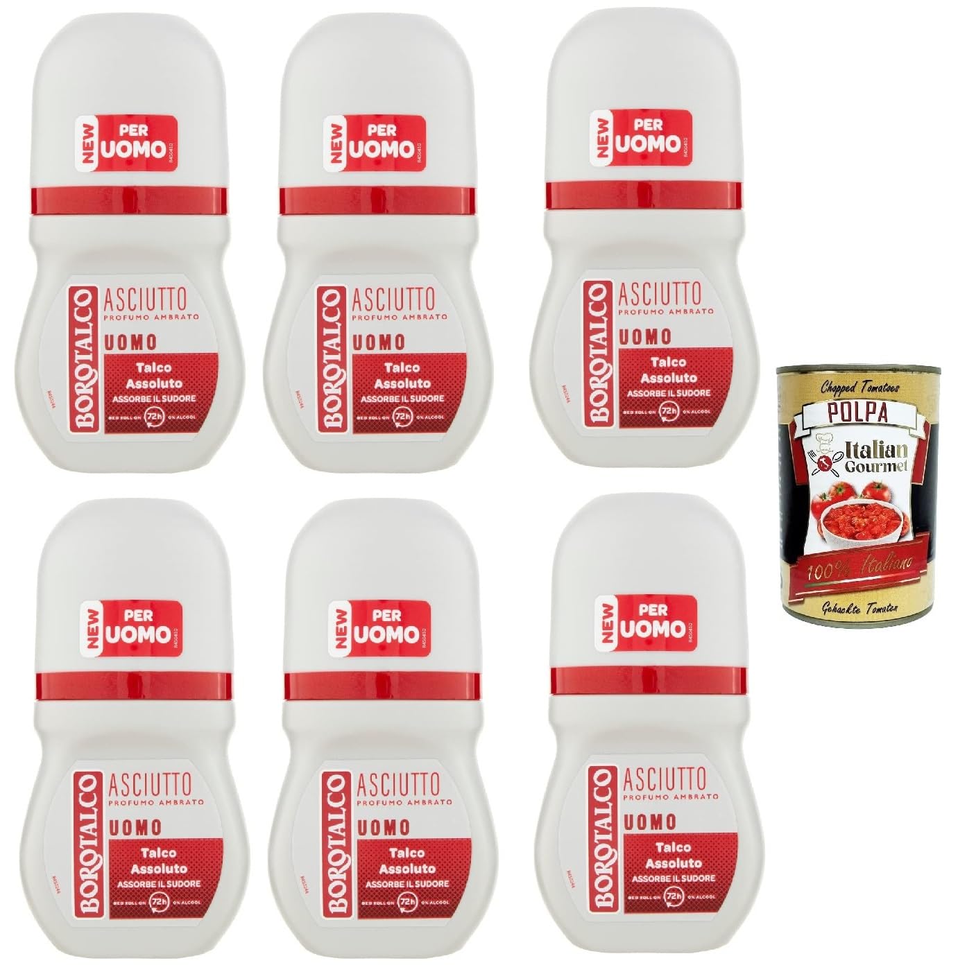 Borotalco Lot de 6 déodorants roll on déodorant Uomo Asciutto Men Amber 50 ml Polpa Italian Gourmet 400 g