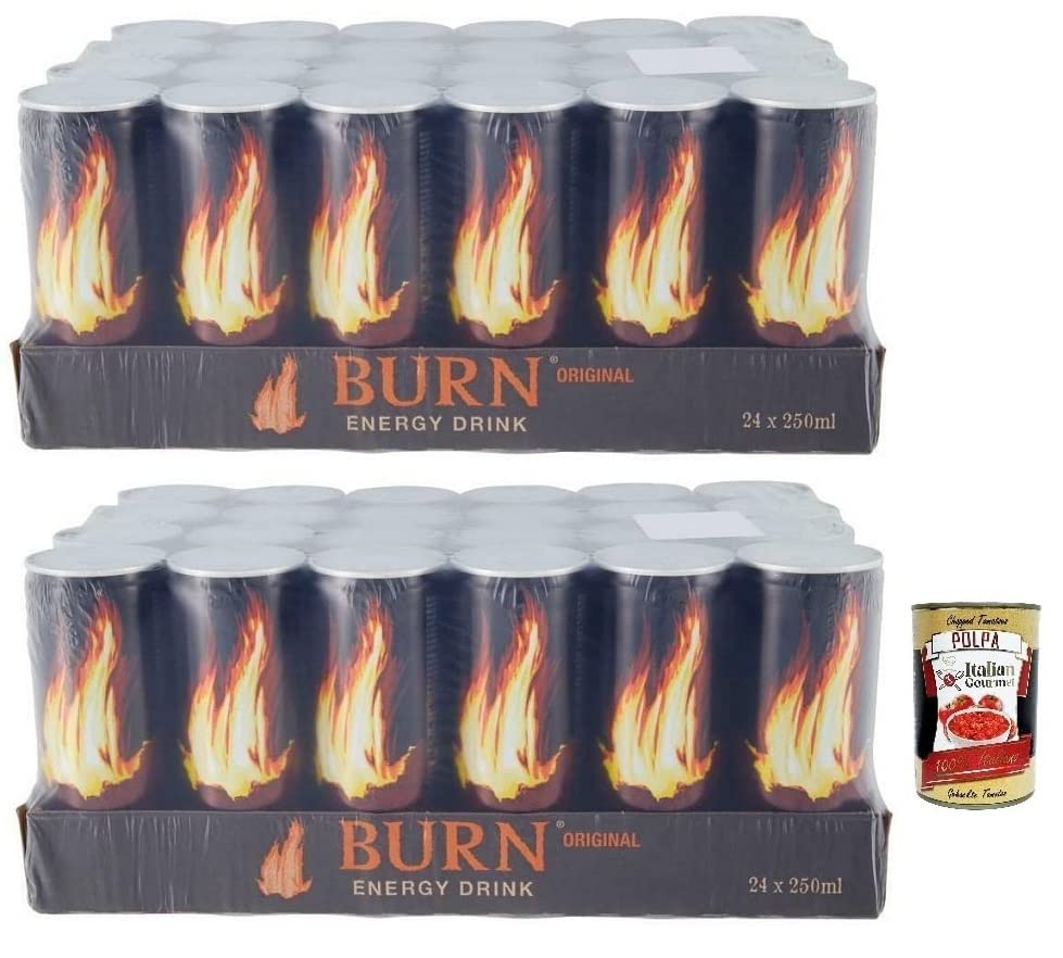 Burn Energy Drink Original Lot de 48 boissons énergisantes gazeuses avec ajout de taurine, caféine, guarana et vitamines B Boîte jetable de 250 ml Italian Gourmet Polpa di Pomodoro 400 g