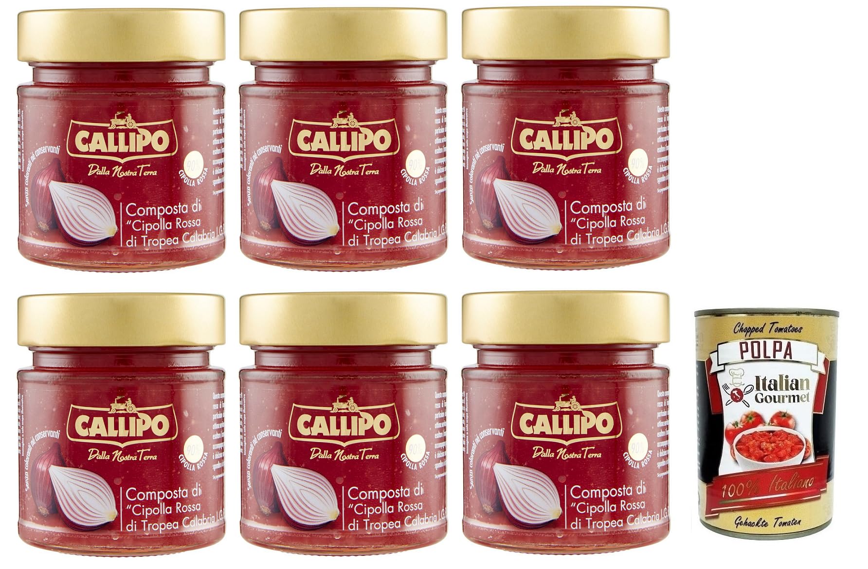 Callipo Composta Di Cipolla Rossa Di Tropea Calabria I.G.P. Compote d'oignons rouges de Tropea Calabre, verre 300 g boîte italienne Gourmet Polpa di Pomodoro 400 g