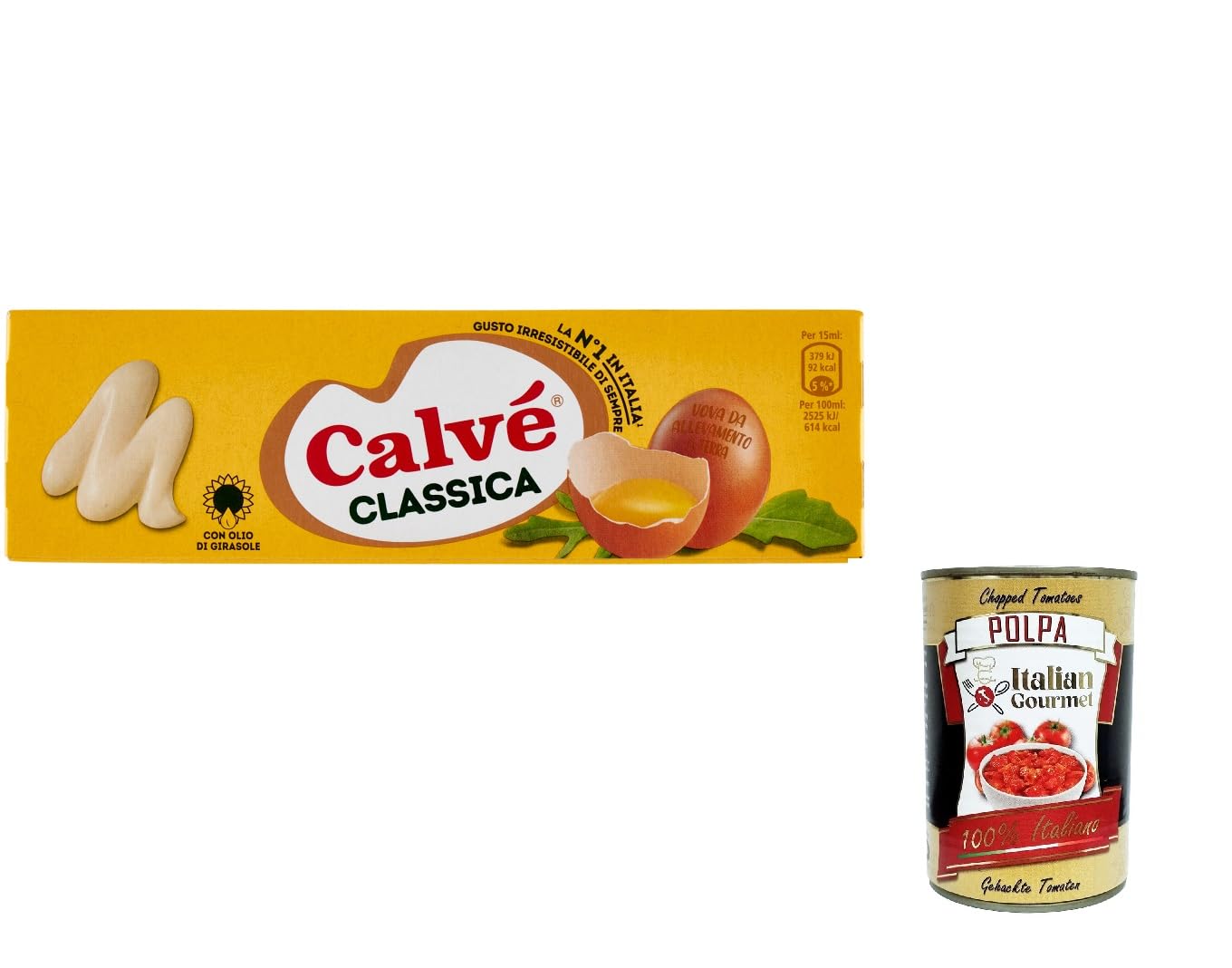 Italian Gourmet E.R. Calv Classic Mayonnaise 150ml Tubes with Sunflower Seed Oil Ideal for Sandwiches and Canapes No Preservatives and Sugar Gluten Free Vegetarian + Polpa Italian Gourmet 400g (Pack of 3)