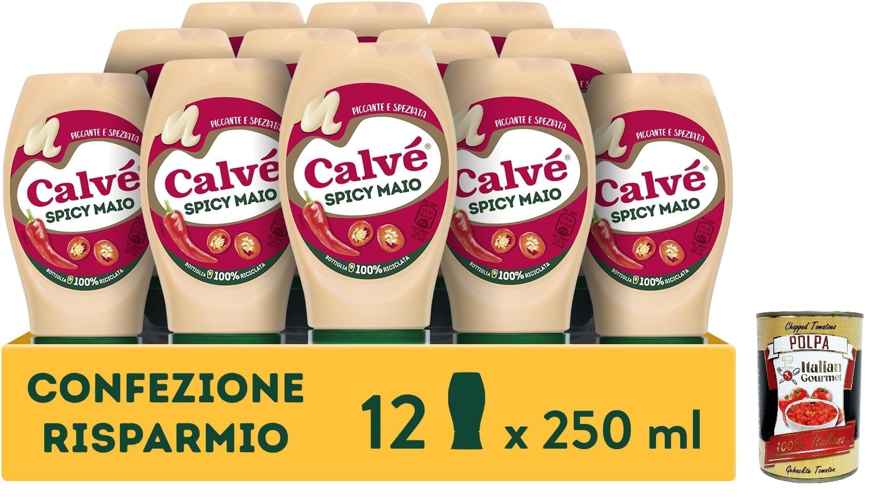 Ingredients: Water, rapeseed oil, spirit vinegar, modified starch, sugar, pasteurized eggs (3.2 ), salt, cream powder, pasteurized egg yolk (1 ), paprika (0.25 ), flavorings, citrus fiber, garlic powder, preservative: potassium sorbate thickener: guar gum, xanthan gum cayenne pepper (0.05 ), paprika extract (0.04 ), mustard flour, concentrated lemon juice, antioxidant: E385. INGREDIENTS Ingredients: Water, rapeseed oil, spirit vinegar, modified starch, sugar, pasteurized eggs (3.2 ), salt, cream powder, pasteurized egg yolk (1 ), paprika (0.25 ), flavorings, citrus fiber, garlic powder, preservative: potassium sorbate Thickener: Guar seed flour, xanthan gum Cayenne pepper (0.05 ), paprika extract (0.04 ), mustard flour, concentrated lemon juice, antioxidant: E385.Calvé Maionese Spicy Mayo, 12 pièces de 250 ml, mayonnaise avec ajout de paprika et de poivre de Cayenne, sauce épicée et piquante idéale pour sushi, pokè et frits Italian Gourmet polpa 400gDESCRIPTION DU PRODUIT DESCRIPTION DU PRODUIT Ingrédients : eau, huile de colza, vinaigre d'alcool, amidon modifié, sucre, œufs pasteurisés (3,2 ), sel, crème de lait en poudre, jaune d'oeuf pasteurisé (1 ), paprika (0,25 ), arômes, fibre d'agrumes, poudre d'ail, poudre d'ail, conservateur : sorbate de potassium épaississant : farine de graines de Guar, gomme xanthane Poivre de Cayenne (0,05 ), extrait de paprika (0,04 ), farine de moutarde, jus de citron concentré, antioxydant : E385. INGRÉDIENTS Ingrédients : eau, huile de colza, vinaigre d'alcool, amidon modifié, sucre, œufs pasteurisés (3,2 ), sel, crème de lait en poudre, jaune d'oeuf pasteurisé (1 ), paprika (0,25 ), arômes, fibre d'agrumes, poudre d'ail, poudre d'ail, conservateur : sorbate de potassium épaississant : farine de graines de Guar, gomme xanthane Poivre de Cayenne (0,05 ), extrait de paprika (0,04 ), farine de moutarde, jus de citron concentré, antioxydant : E385.
