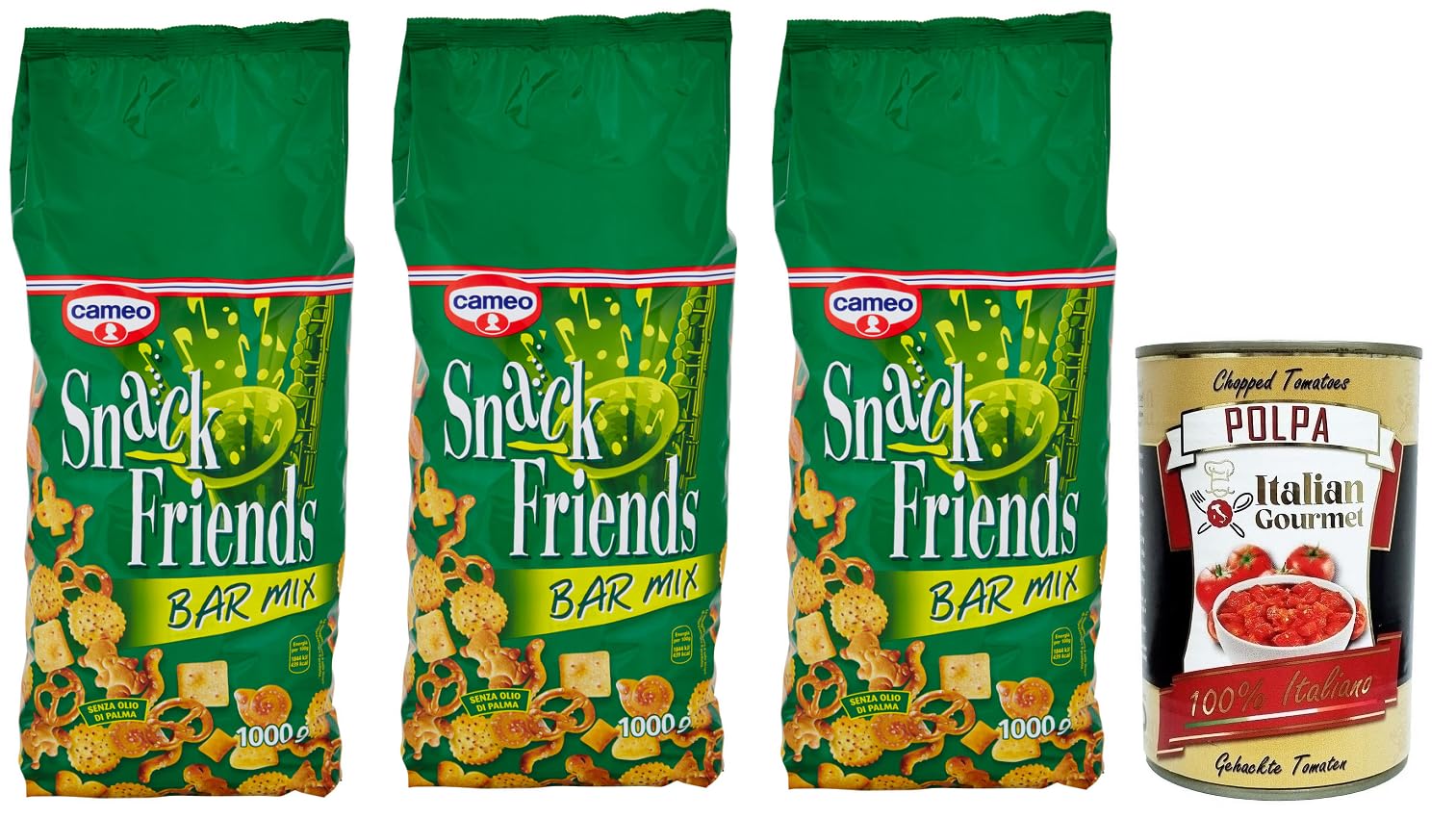 Cameo Snack Friends Bar Mix,Mélange de bretzels, snacks salés, sachet de 1 kg Polpa di Pomodoro Italian Gourmet Polpa di Pomodoro Boîte de 400 g
