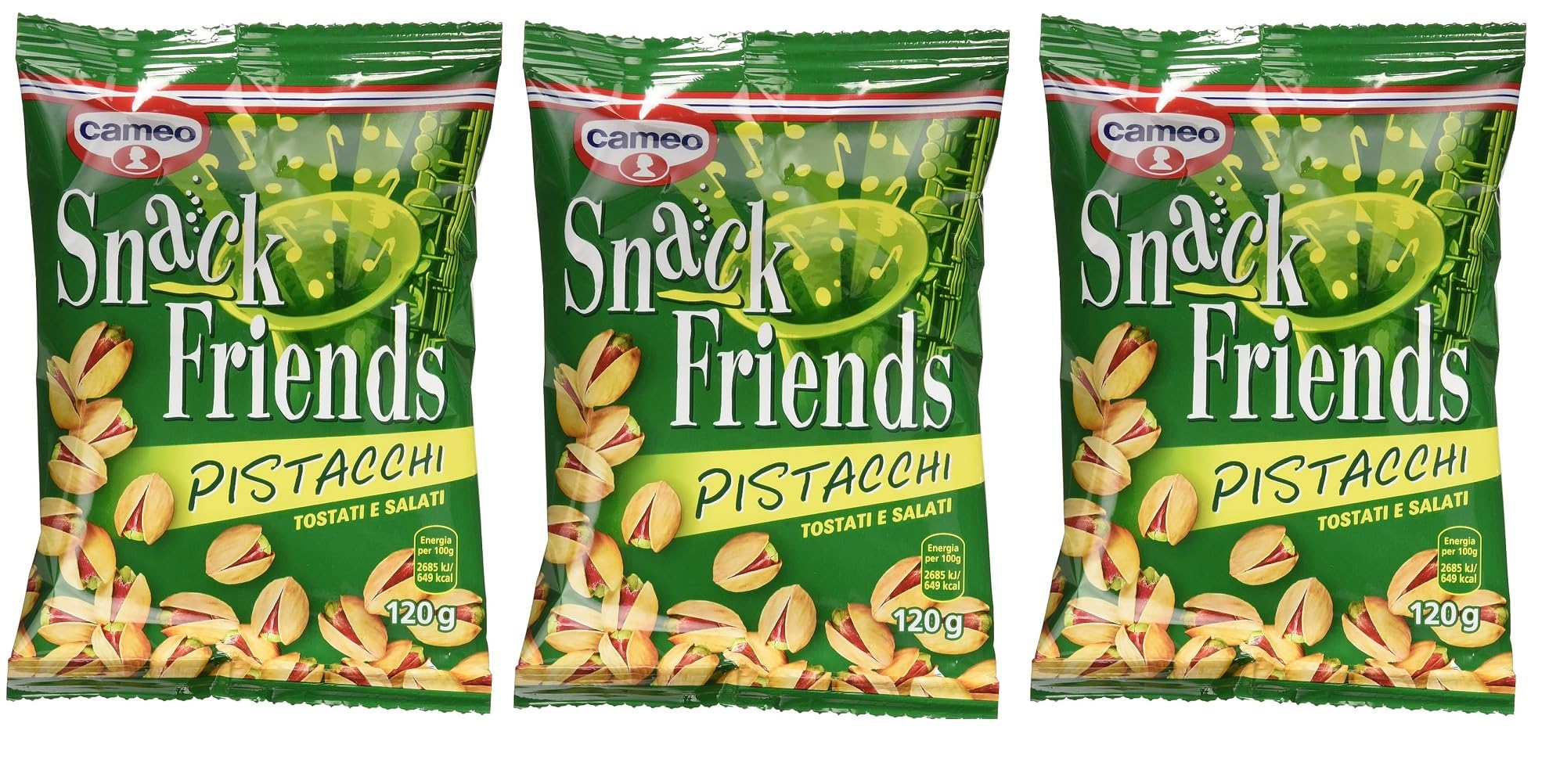 Cameo Snack Friends Lot de 3 paquets de pistaches 120 g polpa italien Gourmet 400 g