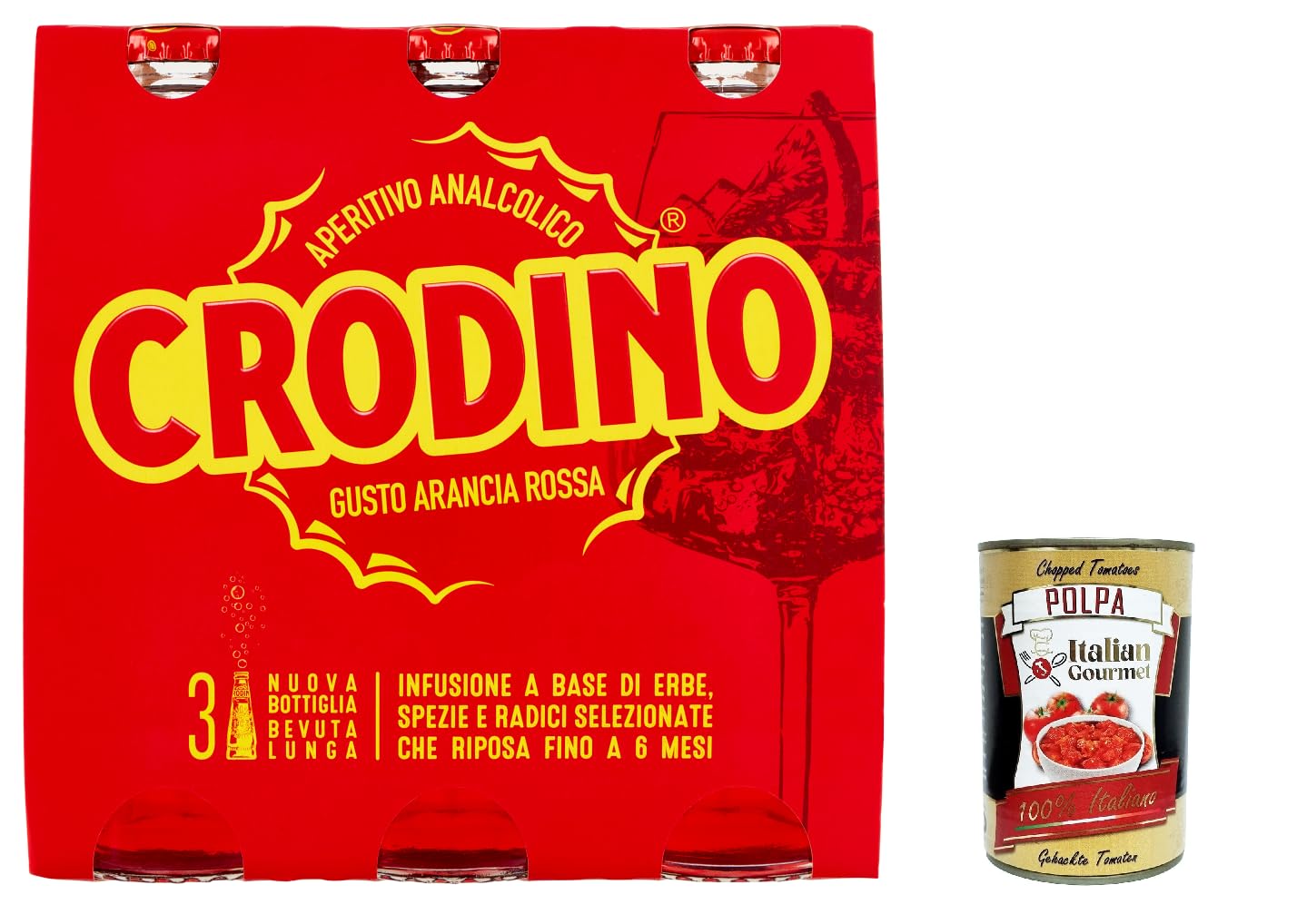 Italian Gourmet E.R. Campari Crodino Red Orange Set of 24 x 100 ml Bitter Aperitif + Italian Gourmet Pulp 400 g