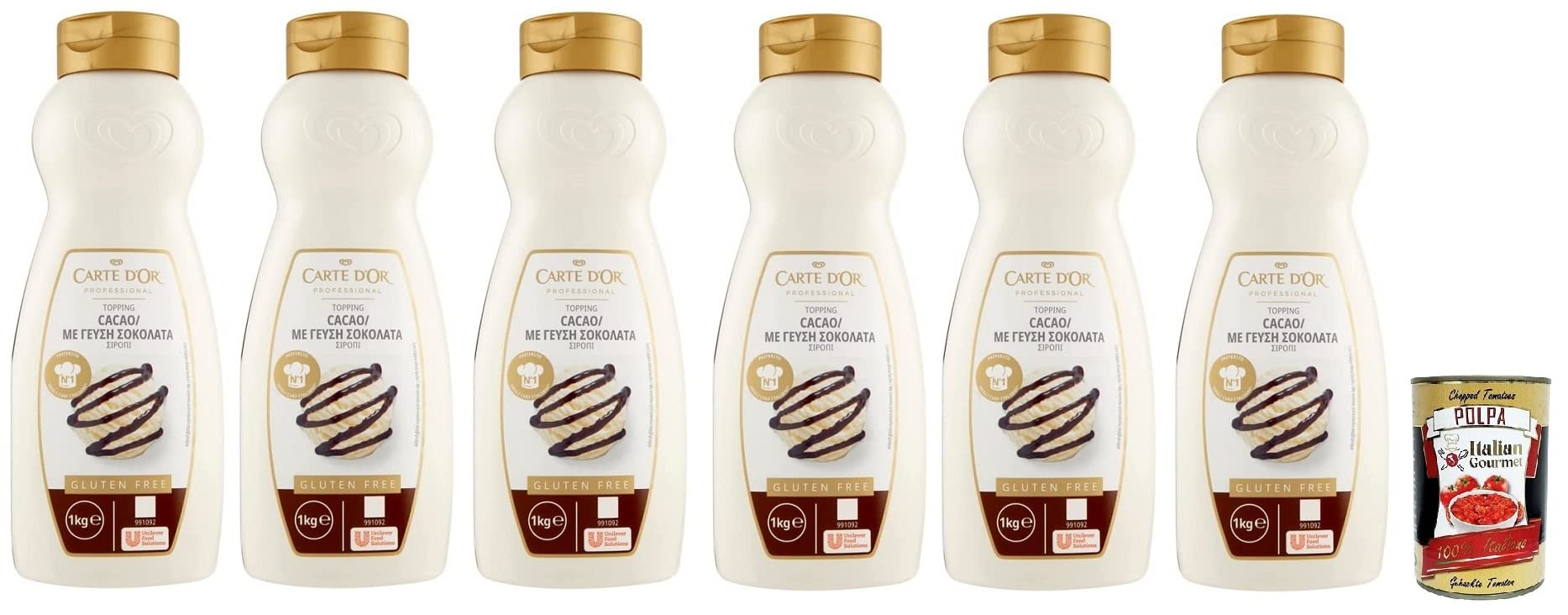 Italian Gourmet E.R. Carte d'Or Topping Cioccolato Set of 6 Sweet Sauces Chocolate Flavour for Cake Decorating and Ice Cream 1kg + Gourmet Polpa di Pomodoro Italian Box 400 g