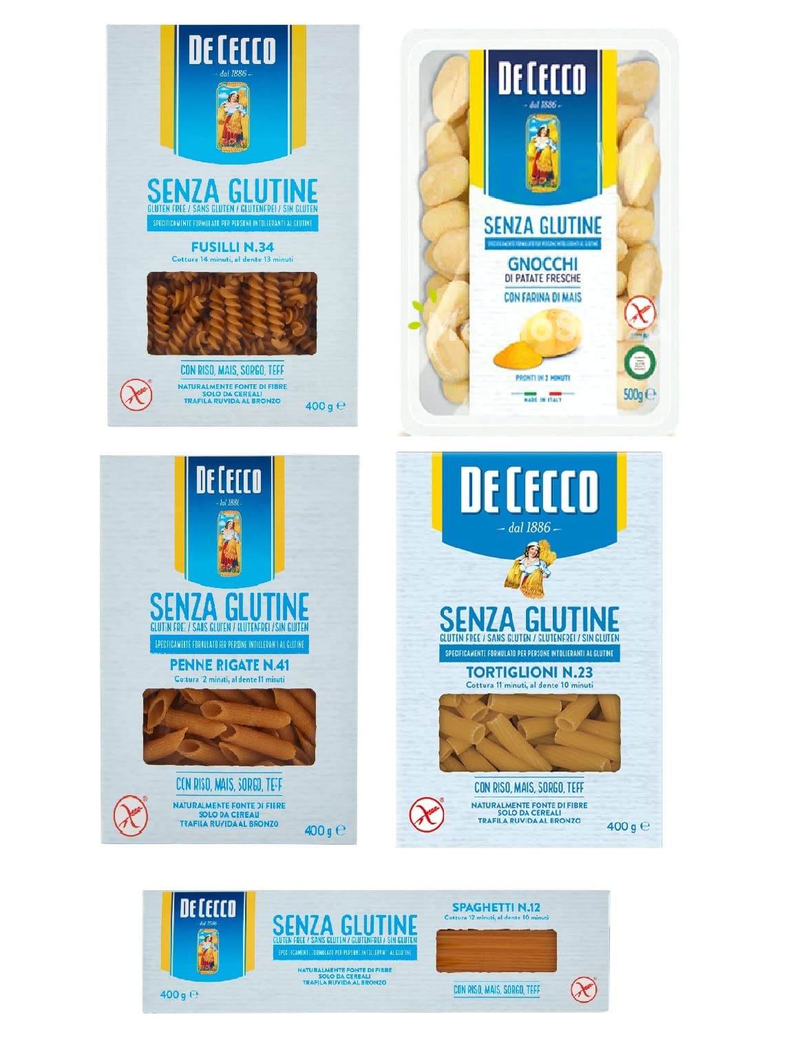 Lot de 5 pâtes sans glutine de Cecco senza 400 g polpa Italian Gourmet 400 g