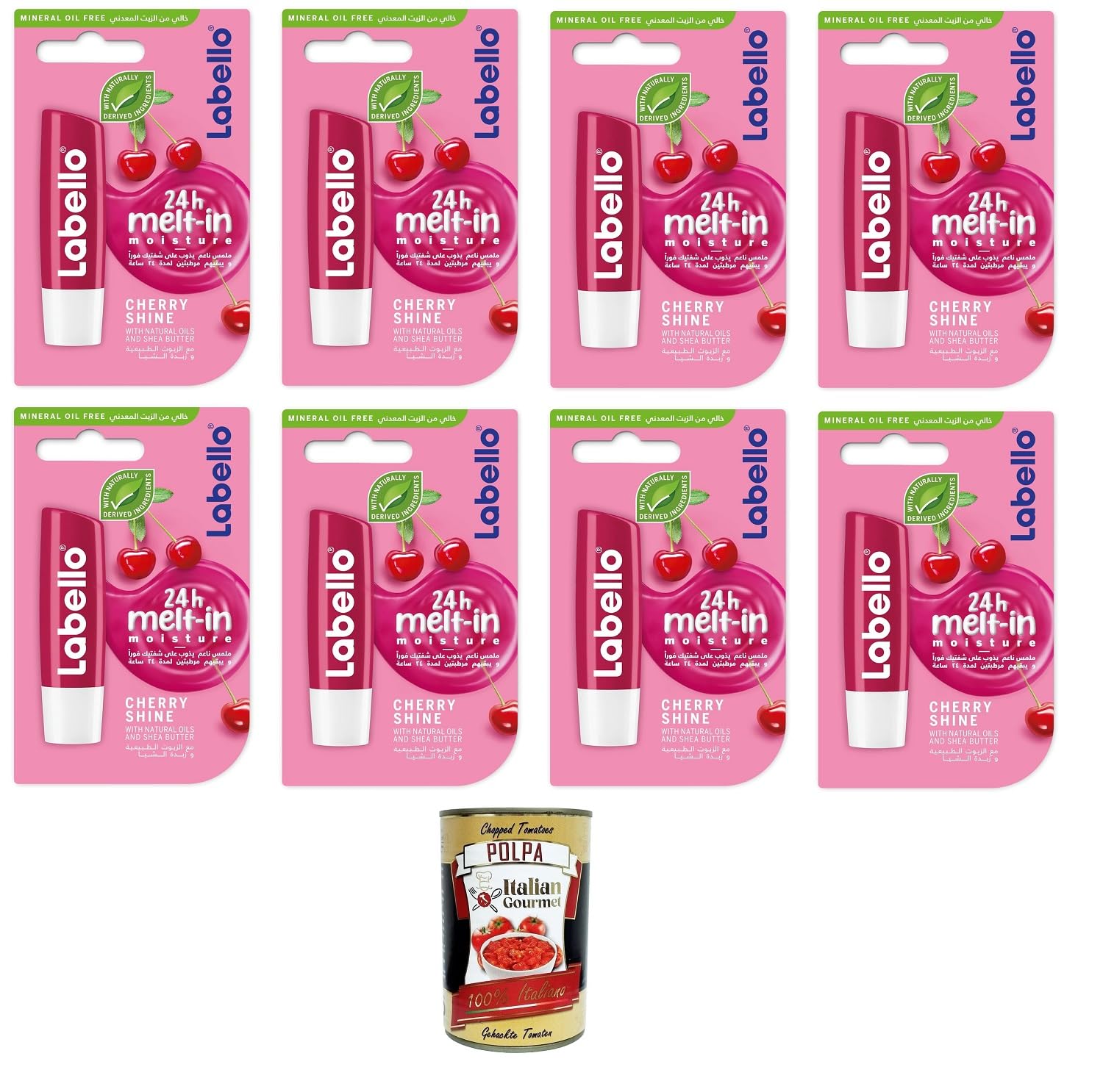 Cherry Shine Lip Balm 4.8g, tinted and nourishing with a cherry scent, moisturizing lip balm, color and shine – With its formula enriched with natural oils and shimmering pigments, the lip balm gives lips a delicate touch of color – Moisturizing lip balm – The Cherry Shine tinted lip balm, enriched with natural oils, melts onto the lips and provides intense hydration for 24 hours. Natural ingredients: colored cocoa butter makes lips shine, shea butter protects them from cracking, and it is free of mineral oils and paraffins. For kissable lips. Thanks to its soft and silky texture, this very dry lip balm ensures kissable lips at any time of day. Contents: Cherry Shine repairing lip balm, with shimmering pigments, moisturizing. Moisturizing and tinted. Cocoa Butter Lip Balm, 1 stick (4.8 g) SAFETY WARNING For external use only. Avoid contact with eyes. Keep away from direct flames or heat sources.Contents: Cherry Shine Repairing Lip Balm with shimmering pigments, moisturizing and tinted cocoa butter - 1 stick of 4.8 g. For kissable lips: Thanks to its soft and silky texture, this very dry lip balm ensures kissable lips at any time of day. Natural ingredients: The colored cocoa butter makes lips shine, shea butter protects them from cracking, and it is free of mineral oils and paraffins. Moisturizing lip balm - The Cherry Shine tinted lip balm, enriched with natural oils, melts onto the lips and intensely moisturizes for 24 hours. Color and shine: Thanks to its formula enriched with natural oils and shimmering pigments, the lip balm adds a delicate touch of color to the lips. Free Italian gourmet tomato paste - 400 g.Cherry Shine Baume à lèvres 4,8 g, tonique et nourrissant avec arôme cerise, baume à lèvres hydratant 8 x 4,8 g Italian Gourmet polpa 400 gDESCRIPTION DU PRODUIT DESCRIPTION DU PRODUIT Cherry Shine Baume à lèvres 4,8 g, teinté et nourrissant au parfum de cerise, baume à lèvres hydratant, couleur et brillance – Avec sa formule enrichie en huiles naturelles et en pigments chatoyants, le baume à lèvres donne aux lèvres une délicate touche de couleur - Baume à lèvres hydratant - Le baume à lèvres teinté Cherry Shine de , enrichi en huiles naturelles, fond sur les lèvres et Hydratation intense pendant 24 heures. Ingrédients naturels : le beurre de cacao coloré fait briller les lèvres, les protège des fissures grâce au beurre de karité et est exempt d'huiles minérales et de paraffines. Pour les lèvres de baiser. Grâce à sa texture douce et soyeuse, le baume à lèvres très sec assure des lèvres embrassables à tout moment de la journée. Contenu de la livraison : Baume à lèvres réparateur Cherry Shine, avec pigments chatoyants, hydratant. Hydratant et teint. Beurre de cacao pour les lèvres, 1 bâtonnet de 4,8 g AVERTISSEMENT DE SÉCURITÉ Pour un usage externe uniquement. Évitez tout contact avec les yeux. Tenir à l'écart des flammes directes ou des sources de chaleur.Contenu : baume à lèvres réparateur Cherry Shine avec pigments chatoyants, beurre de cacao hydratant et teinté - 1 bâton de 4,8 g. Pour les lèvres baisers : grâce à sa texture douce et soyeuse, le baume à lèvres très sec assure des lèvres embrassantes à tout moment de la journée. Ingrédients naturels : le beurre de cacao coloré fait briller les lèvres, les protège des fissures grâce au beurre de karité et est exempt d'huiles minérales et de paraffines. Baume à lèvres hydratant - Le baume à lèvres teinté Cherry Shine de , enrichi en huiles naturelles, fond sur les lèvres et hydrate intensément pendant 24 heures. Couleur et brillance : grâce à sa formule enrichie en huiles naturelles et en pigments chatoyants, le baume à lèvres apporte une touche de couleur délicate aux lèvres. Gourmet italien gratuit polpa di pomodoro - 400 g.