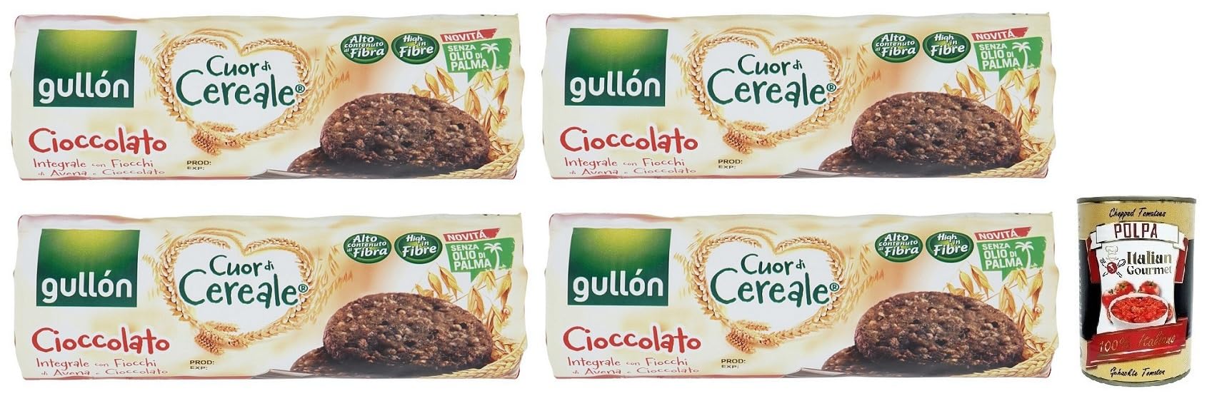 Gullón Cuor di Cereale Cioccolato Lot de 4 biscuits entiers au chocolat et flocons d'avoine 280 g boîte italienne Gourmet Polpa di Pomodoro 400 g