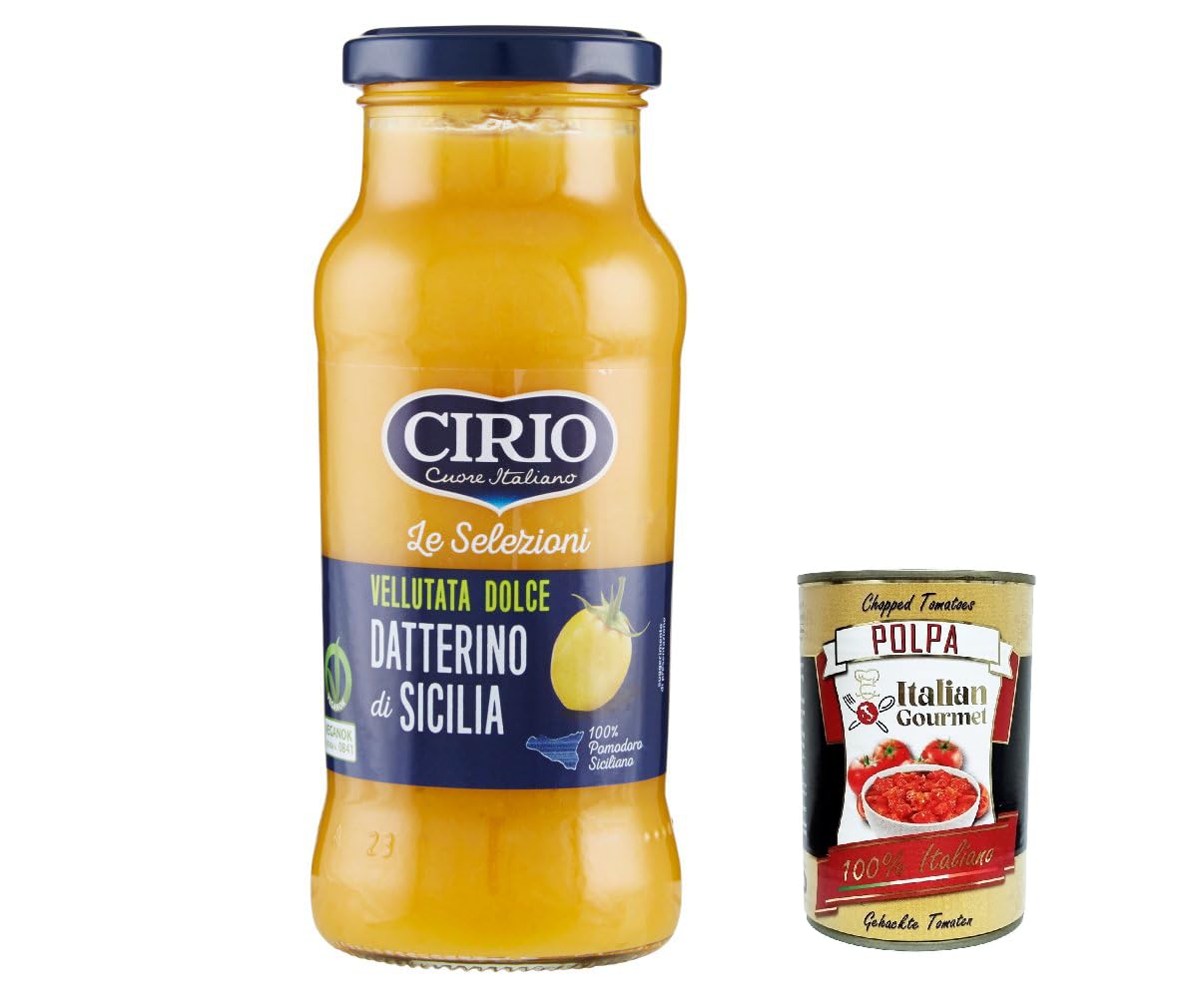 Italian Gourmet E.R. Cirio Le Selezioni Sweet Velvety Yellow Datterino from Sicily Datterini Yellow Tomatoes 350g + Italian Gourmet Pulp 400g