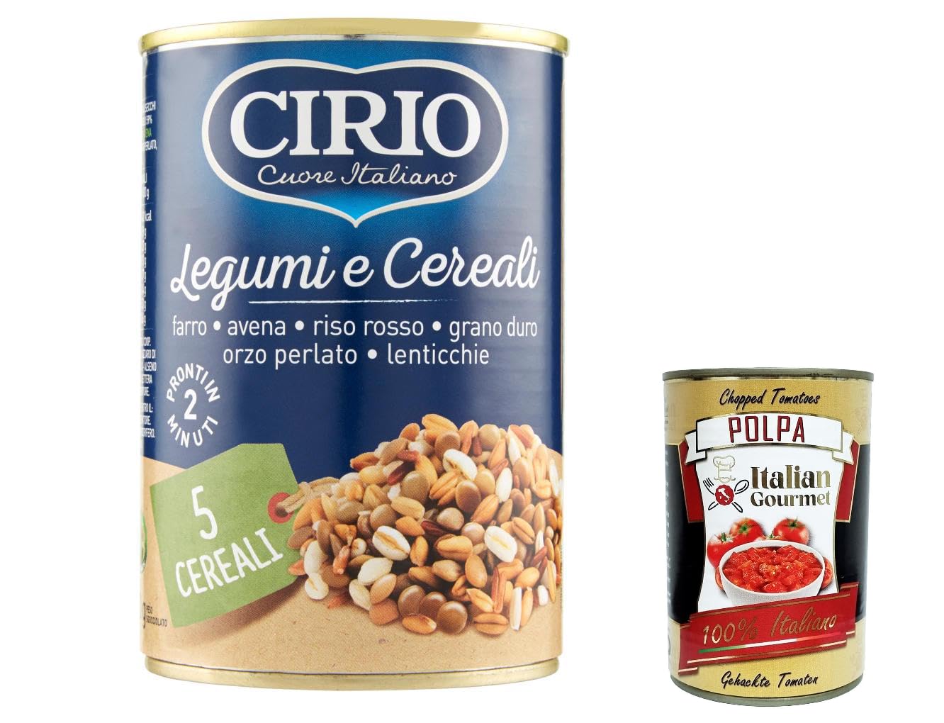 Cirio Legumi E 5 Céréales, légumineuses et 5 céréales, mélange de riz rouge, blé durum, orge et lentilles nacrées, boîtes de 410 g polpa italien gourmet 400 g